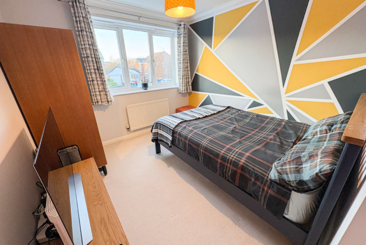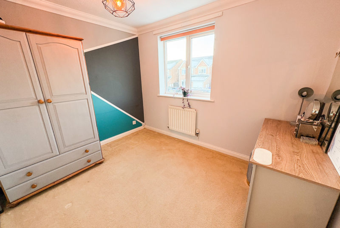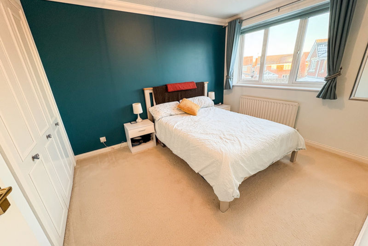 BEDROOM ONE: (rear): 11’9 x 9’03, (3.38m x 2.82m), double glazed window to rear, fitted wardrobes and radiator.
