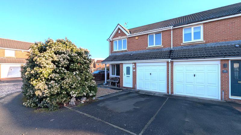 Positioned within a tranquil cul-de-sac on the popular Cavendish Grange Estate, this impressive semi-detached home offers well-proportioned living spaces ideal for families. The property opens with a welcoming entrance porch leading into an elegant lounge through dining room, creating a bright and comfortable living area, which flows seamlessly into a conservatory overlooking the rear garden. The kitchen is well appointed and thoughtfully arranged to suit everyday family life. To the first floor are three generously sized double bedrooms, with the principal bedroom benefiting from an en suite shower room, alongside a modern family bathroom. Externally, the front of the property features a low-maintenance garden with gravel, a driveway providing off-road parking, and access to a single attached garage. To the rear is a delightful garden, mainly laid to lawn with a patio area ideal for entertaining, complemented by mature shrubbery and fenced boundaries offering privacy.