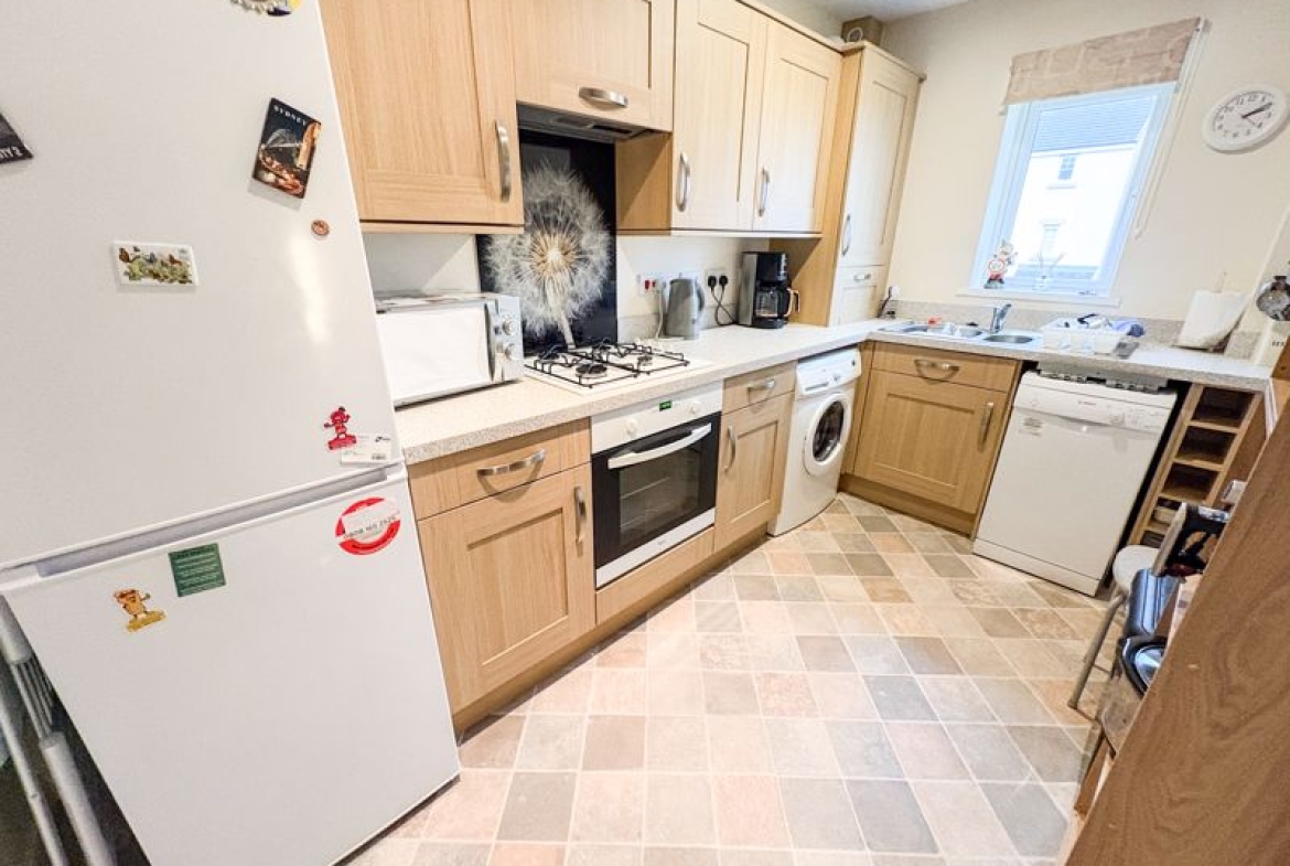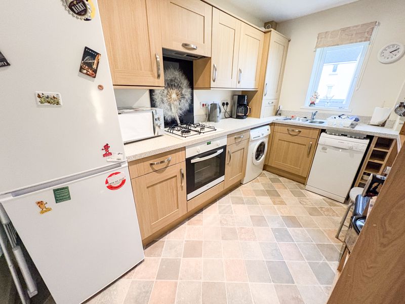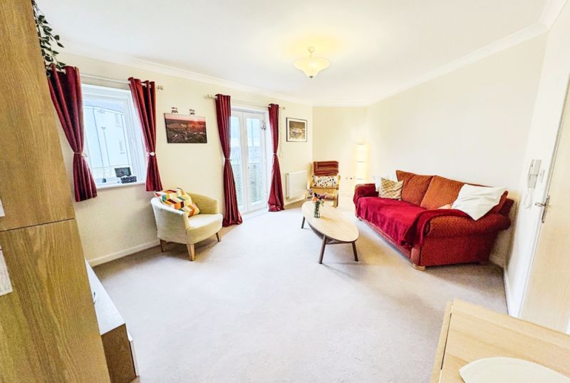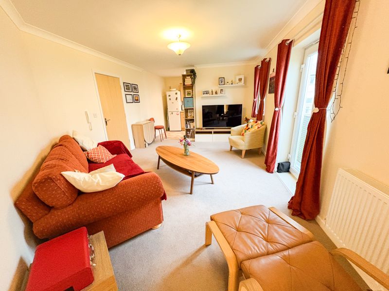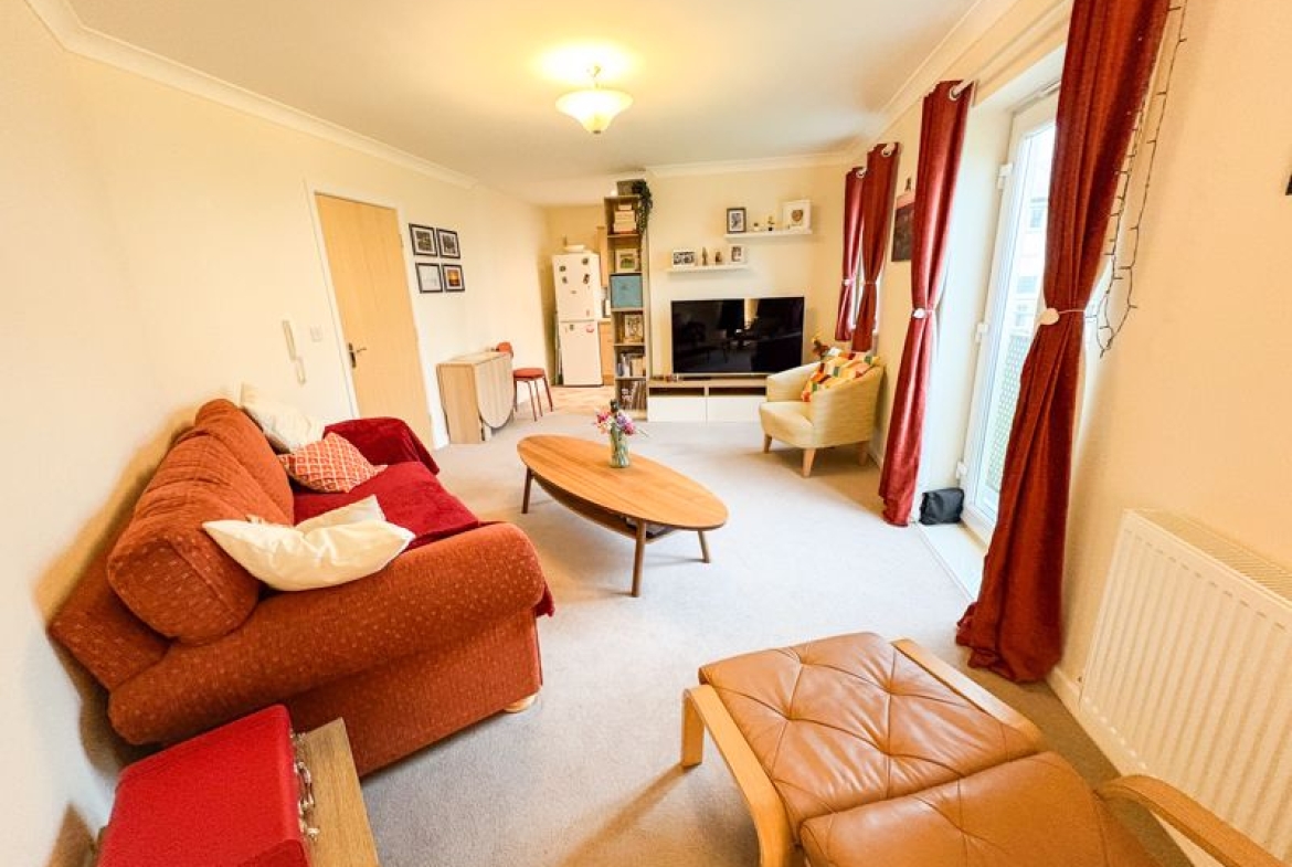 Inside, the property offers a bright open-plan lounge with Juliette balcony flowing into a stylish, contemporary kitchen. Two comfortable double bedrooms and a modern white bathroom suite complete the layout. The building benefits from a secure entry system, and the apartment comes with an allocated parking bay along with access to attractive communal gardens.