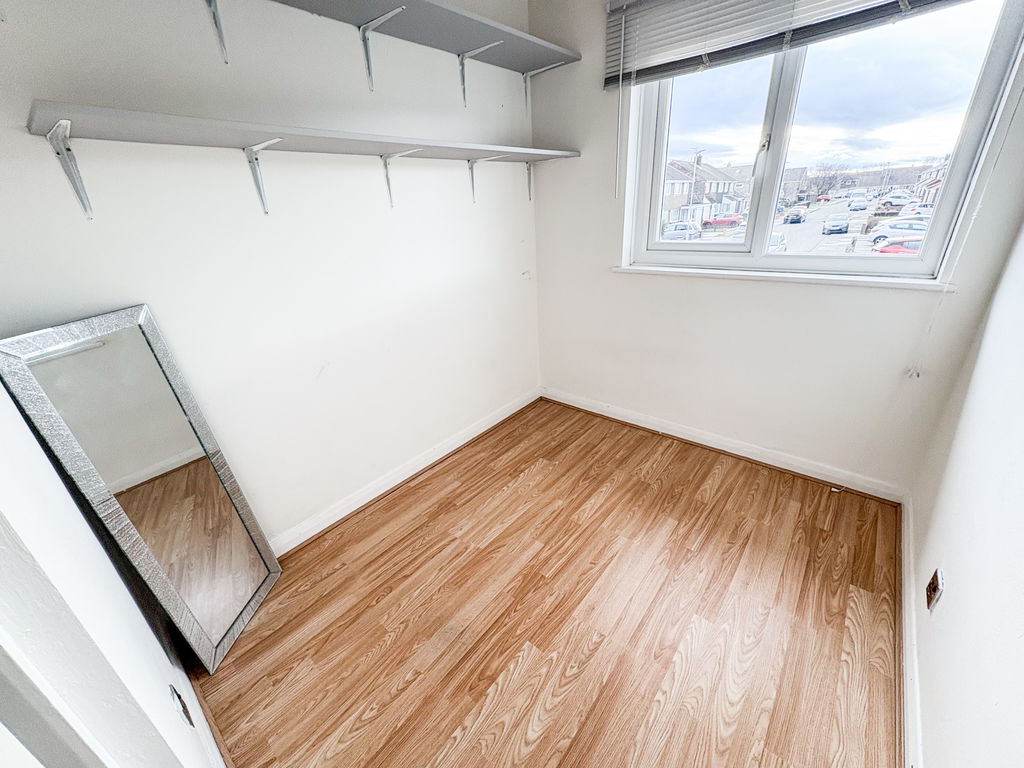 BEDROOM THREE: (front): 10’0 x 6’5, (3.05m x 1.96m), double glazed window to front, built in cupboard, and radiator.