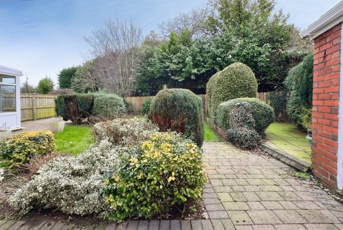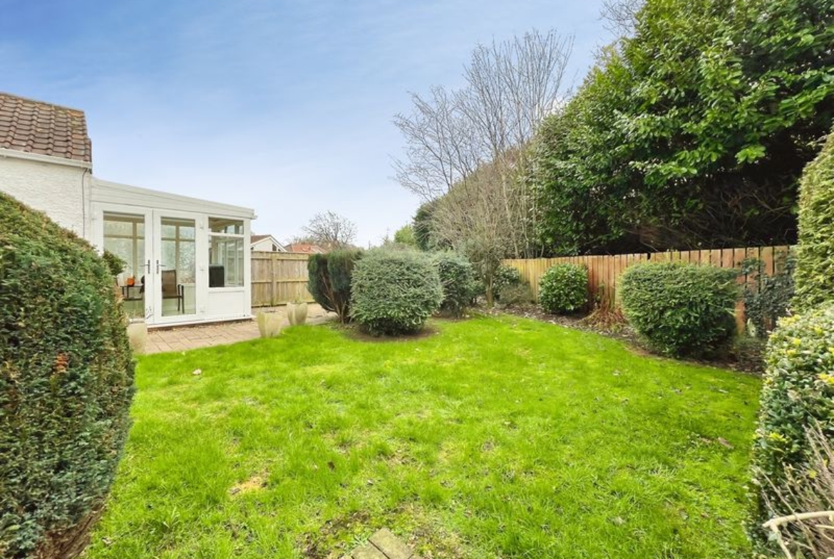 Externally, the bungalow benefits from a long driveway leading to a single garage, providing off-street parking and storage options. The west-facing private garden offers outdoor space with afternoon and evening sun.