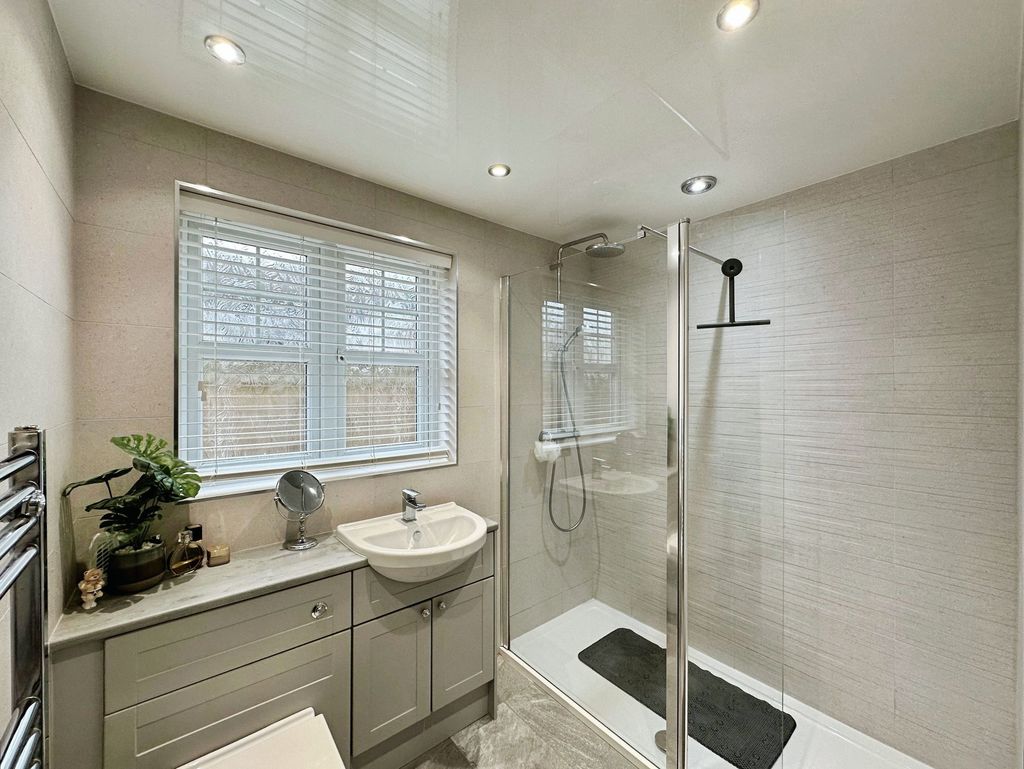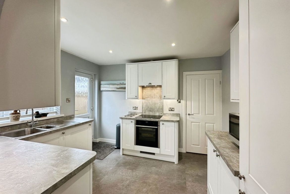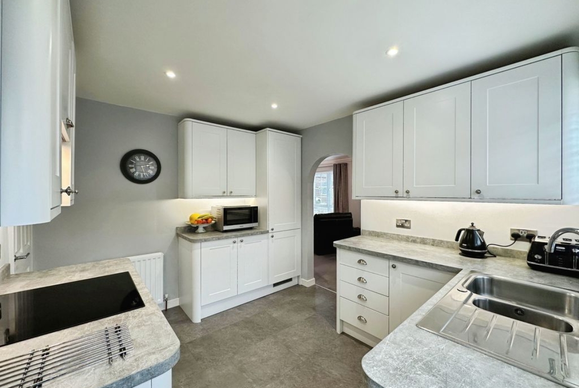 The property briefly comprises:- Large entrance hallway, this leads into a generous sized lounge and diner, which has been fitted with carpet and finished with an electric fire, which is the focal point of the room and will be ideal for those cosy winter nights. The lounge further benefits from a floor to ceiling window which offers views over the front garden. This is great space for families with ample space for your own dining table and chairs. The high spec kitchen has been fitted with a range of wall and base units, offering an abundance of storage. Appliances include fridge freezer, washing machine, induction hob and electric oven.