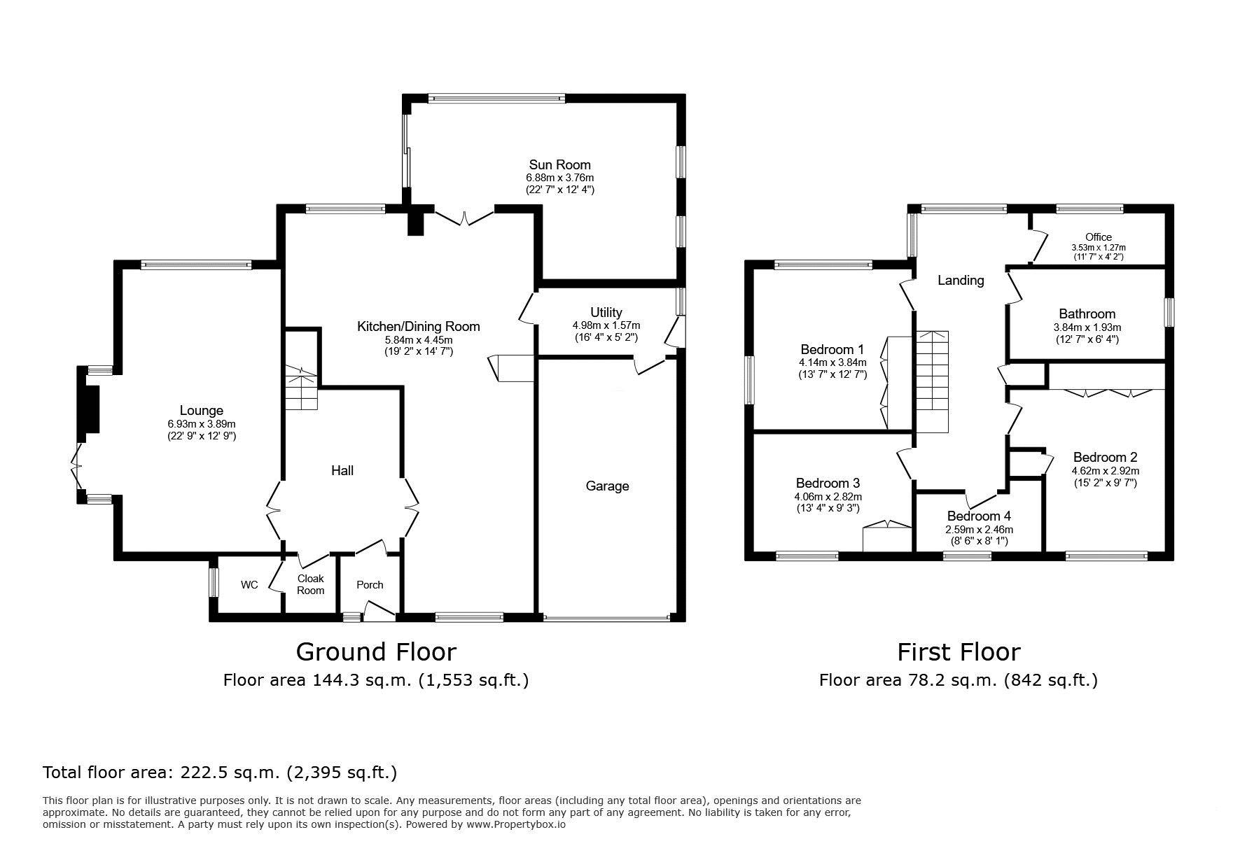 Cloakroom: 4’13 x 4’71 (1.24m x 1.43m)