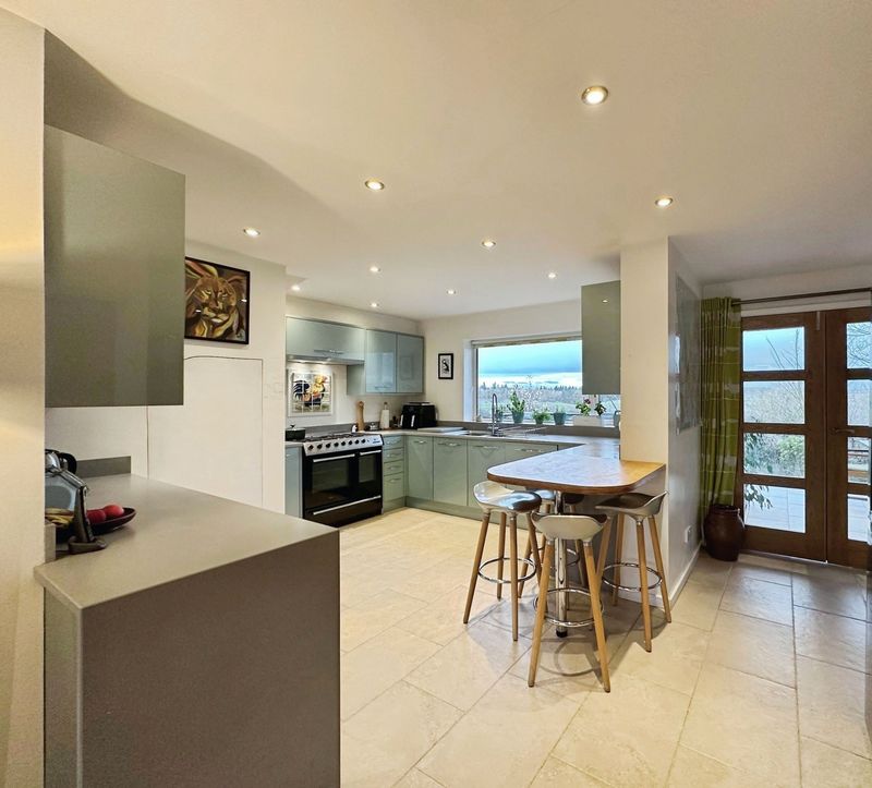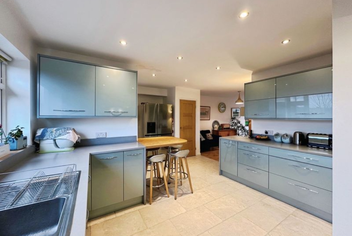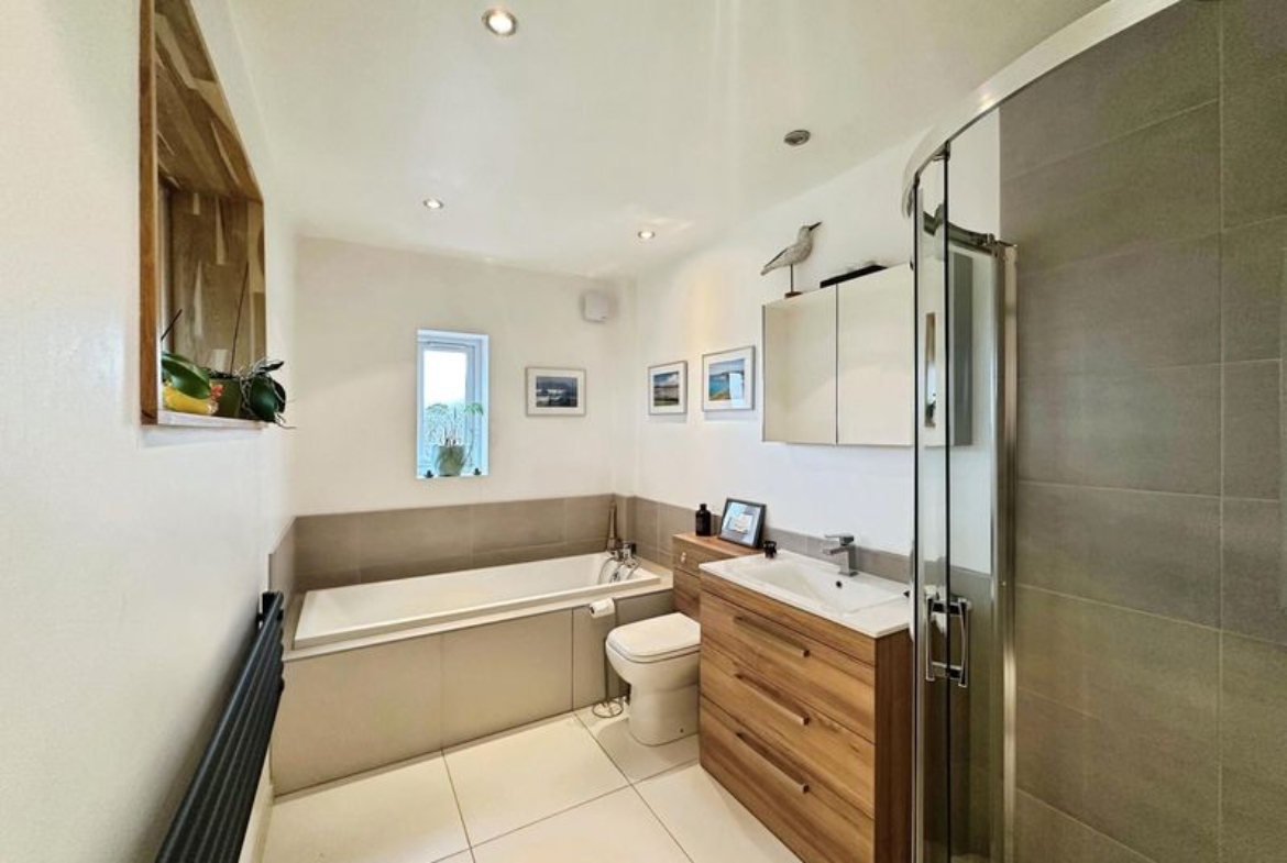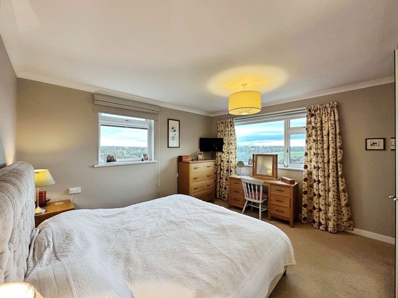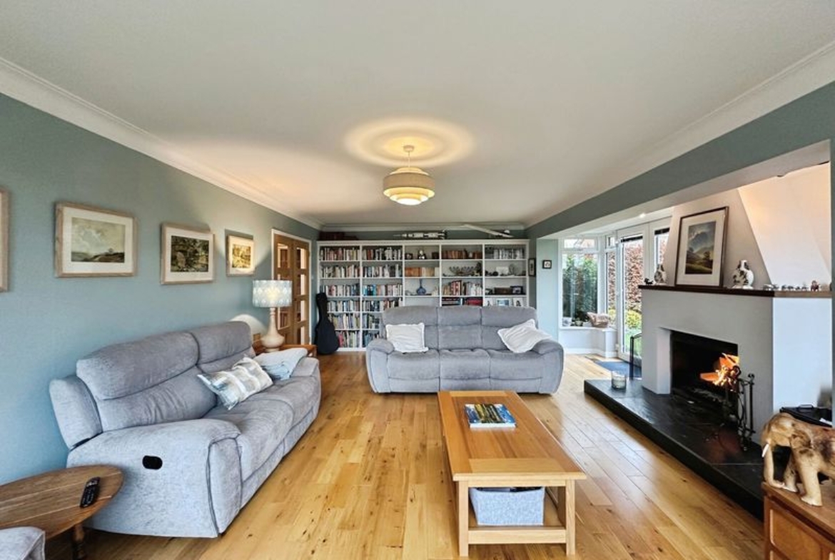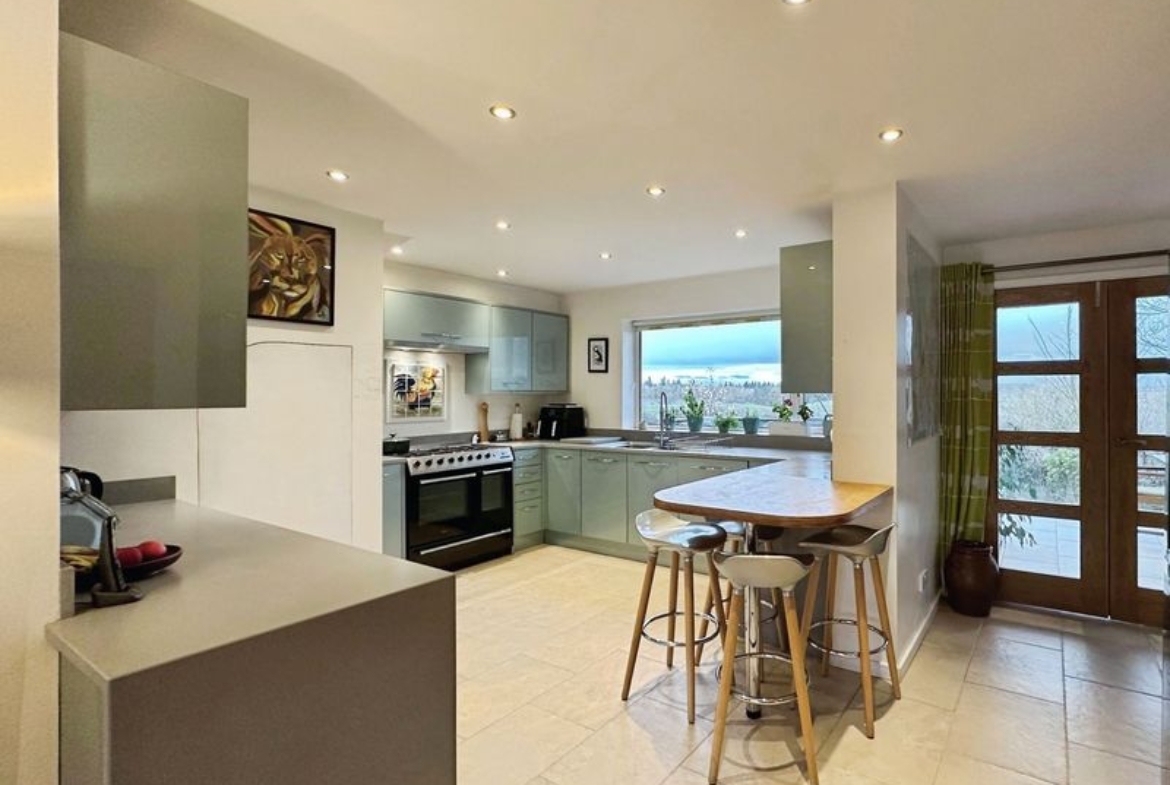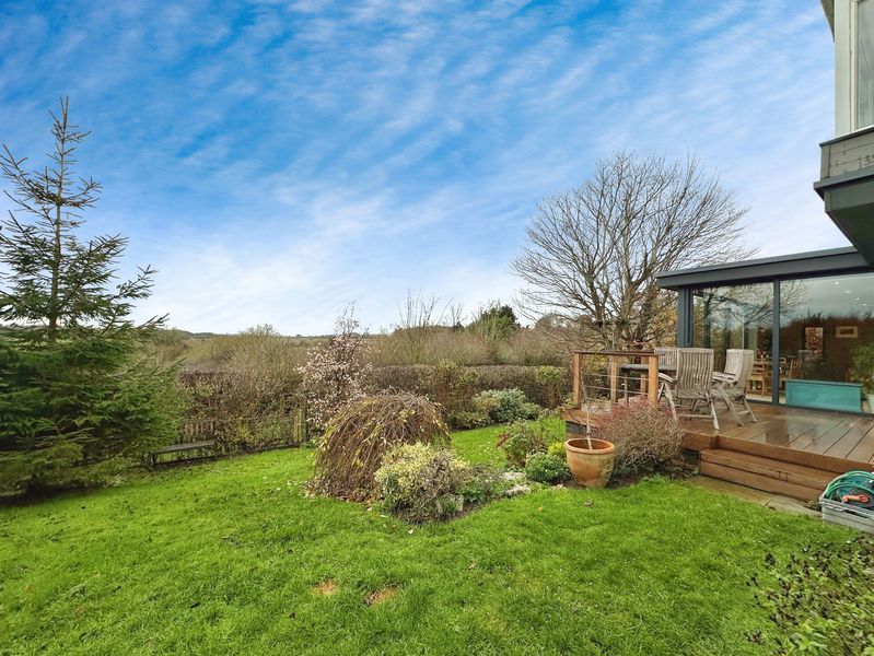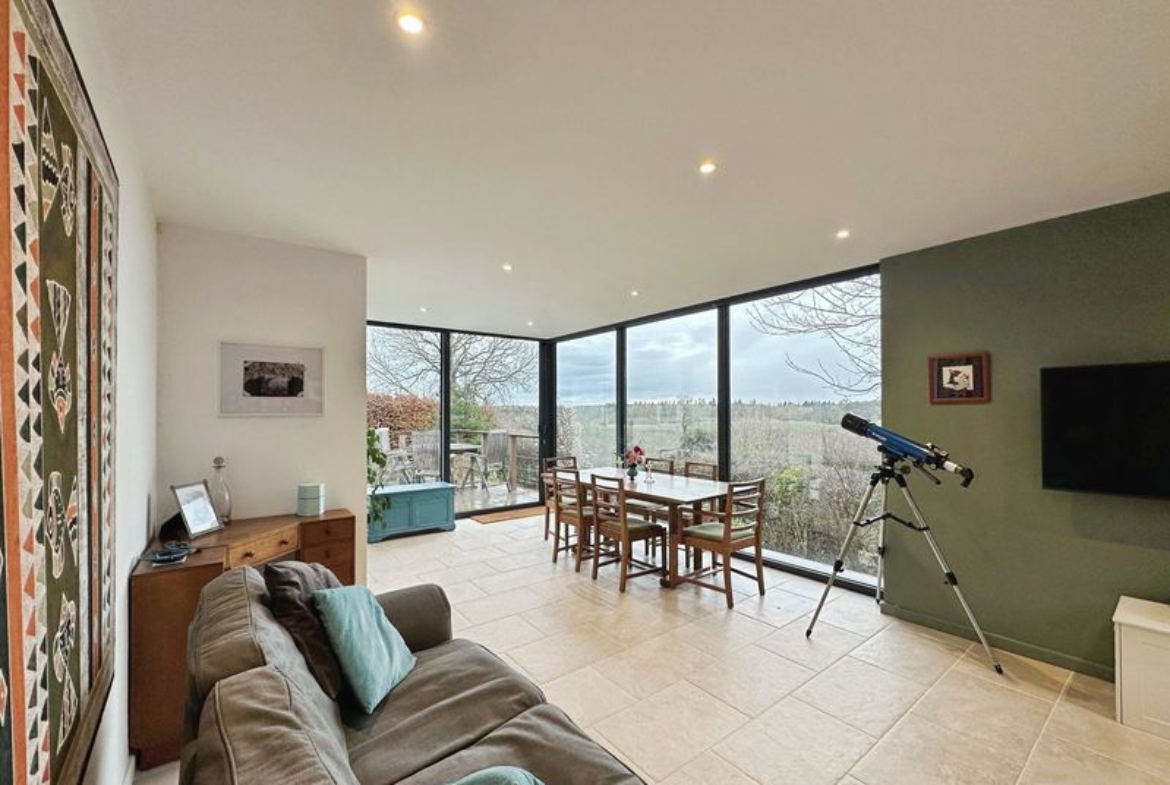 On the lower floor, the entrance porch leads into a generous hallway with oak hardwood flooring extending into the kitchen diner and the lounge. The lounge is a substantial size and has a built-in wall-to-wall bookcase. It benefits further from magnificent views over the countryside and garden, which can be accessed via the double patio doors. In addition, the lounge further benefits from a working open fire, which is the focal point of the room and will be cosy on winter nights. The open-plan kitchen diner is a great space for families, with ample space for your dining table and chairs. The high-spec kitchen has a range of gloss wall and base units, offering an abundance of storage and comes with a built-in breakfast bar. Appliances include a dishwasher and a double oven. The kitchen leads seamlessly into the impressive sunroom located to the rear of the property, and offering the most spectacular views of the countryside. The sunroom is really one of a kind, fitted with fantastic floor-to-ceiling windows and leading directly onto a south-west facing hardwood decked area, which is the perfect place to sit in the summer with a glass of wine to watch the sun go down. You further benefit from a separate utility room, with space for a washing machine and a tumble dryer. The utility room has its own shower and offers direct access to the garage and to the garden. The kitchen, sunroom and utility room all benefit from underfloor heating, each with its own separate zone. There is also a handy cloakroom and downstairs W.C.