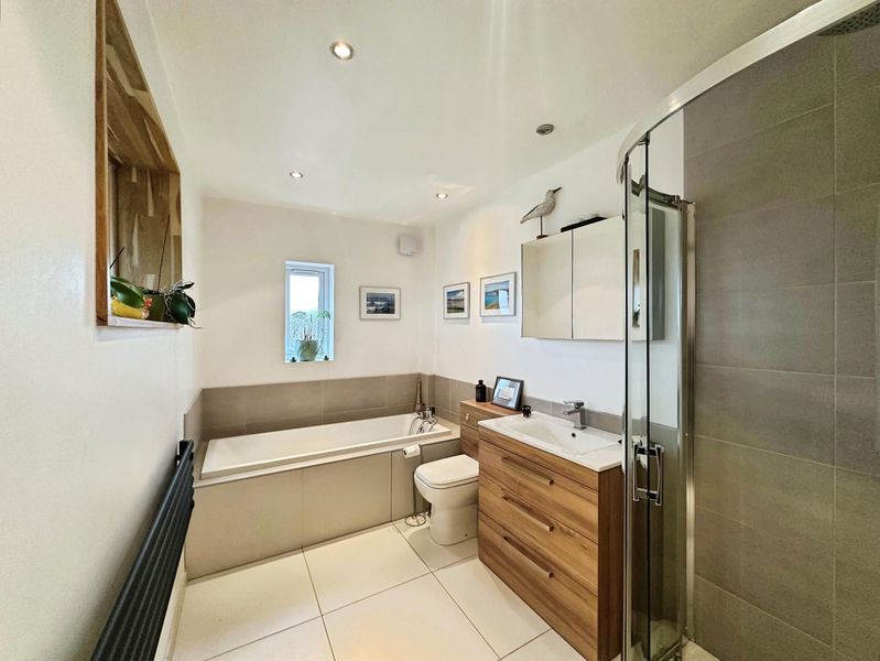 On the upper floor of the accommodation, there are four good sized bedrooms, three doubles and one single. All offering excellent storage and have been carpeted throughout and finished with a light décor. You further benefit from a separate office space, which also offers views of the vast countryside. The main family bathroom has been fitted with W.C, hand basin, bath tub and separate shower.