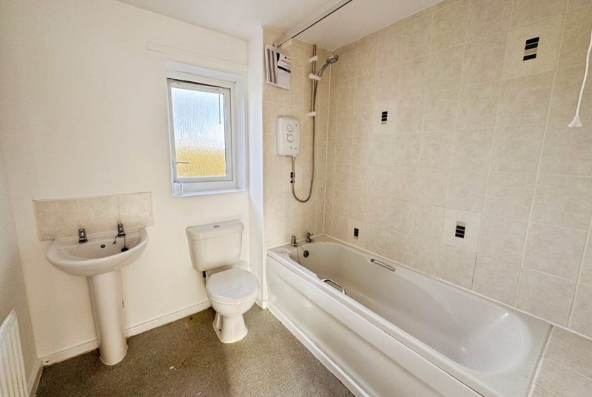 Upstairs, there are two double bedrooms. The primary bedroom benefits from a large storage cupboard, offering excellent space-saving solutions. The family bathroom is fitted with a shower over the bath, catering to both quick routines and leisurely soaks.