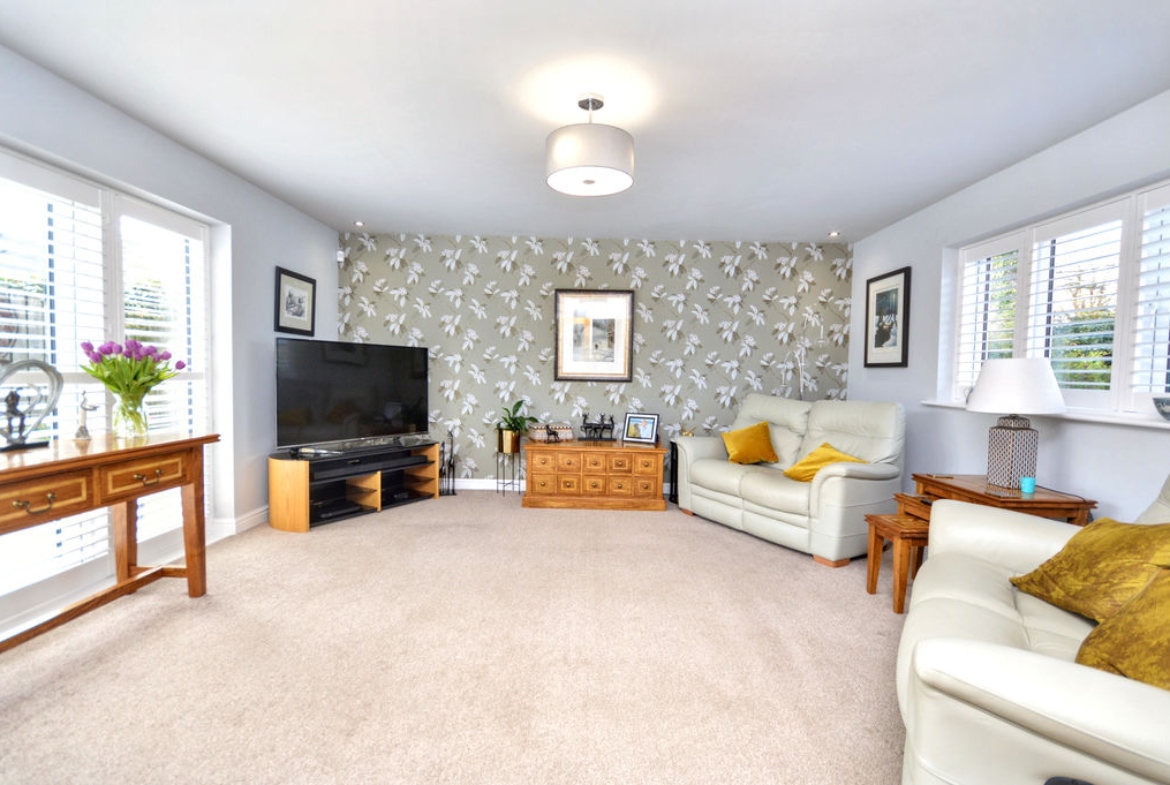 • Spacious dual-aspect living room with French doors to the garden