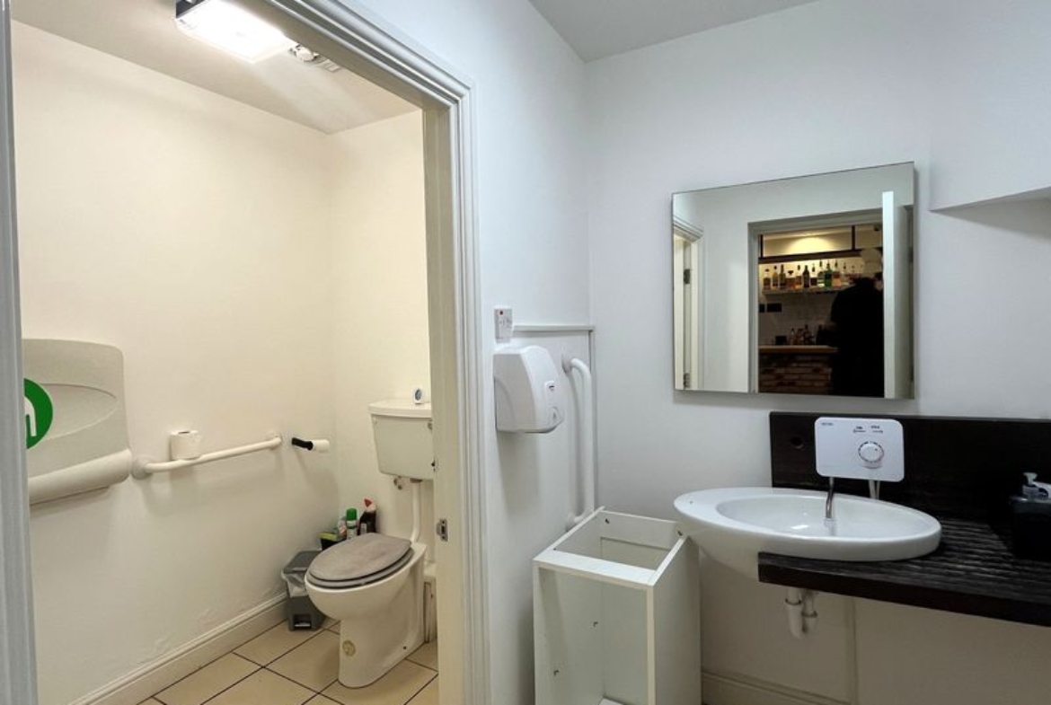 The ground floor extends to approximately 100 sq. m. (1,076.4 sq. ft.) and comprises an open-plan dining and bar area with seating for 32 covers, a fully equipped commercial kitchen, storage areas, male and female WCs, and a disabled WC with baby-changing facilities.
