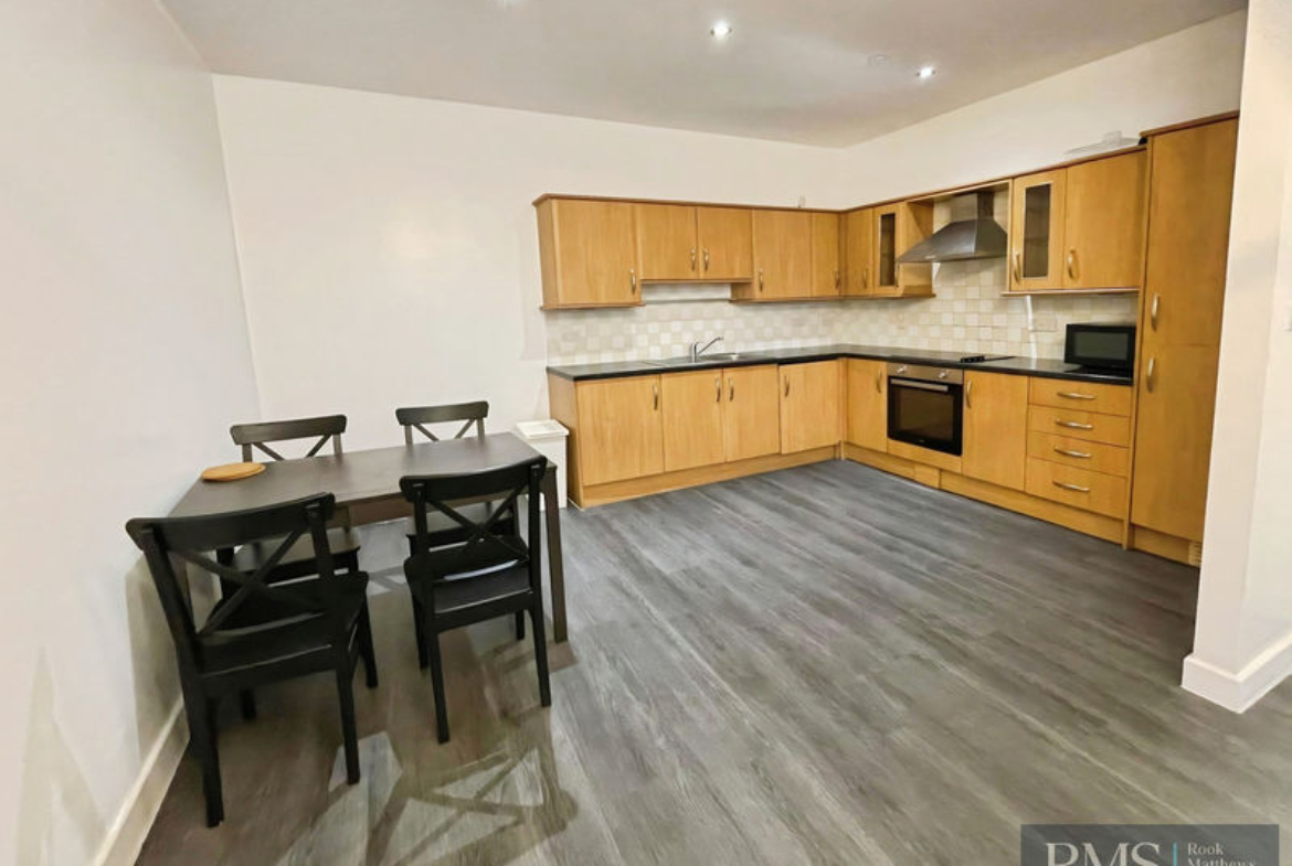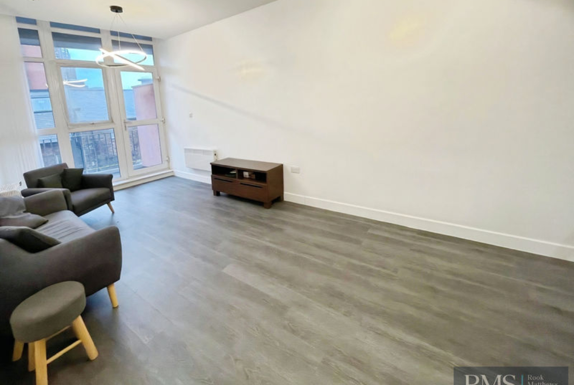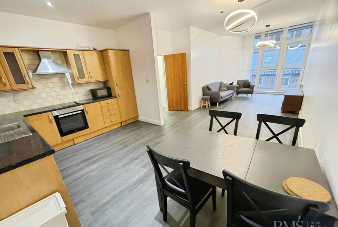 Inside, the property provides an open-plan lounge/dining/kitchen, creating a versatile social living and dining space. From here, there is access to a balcony, giving valuable private outdoor space in a central location. The flat also includes two spacious bedrooms, one of which has an ensuite plus an additional bathroom WC.
