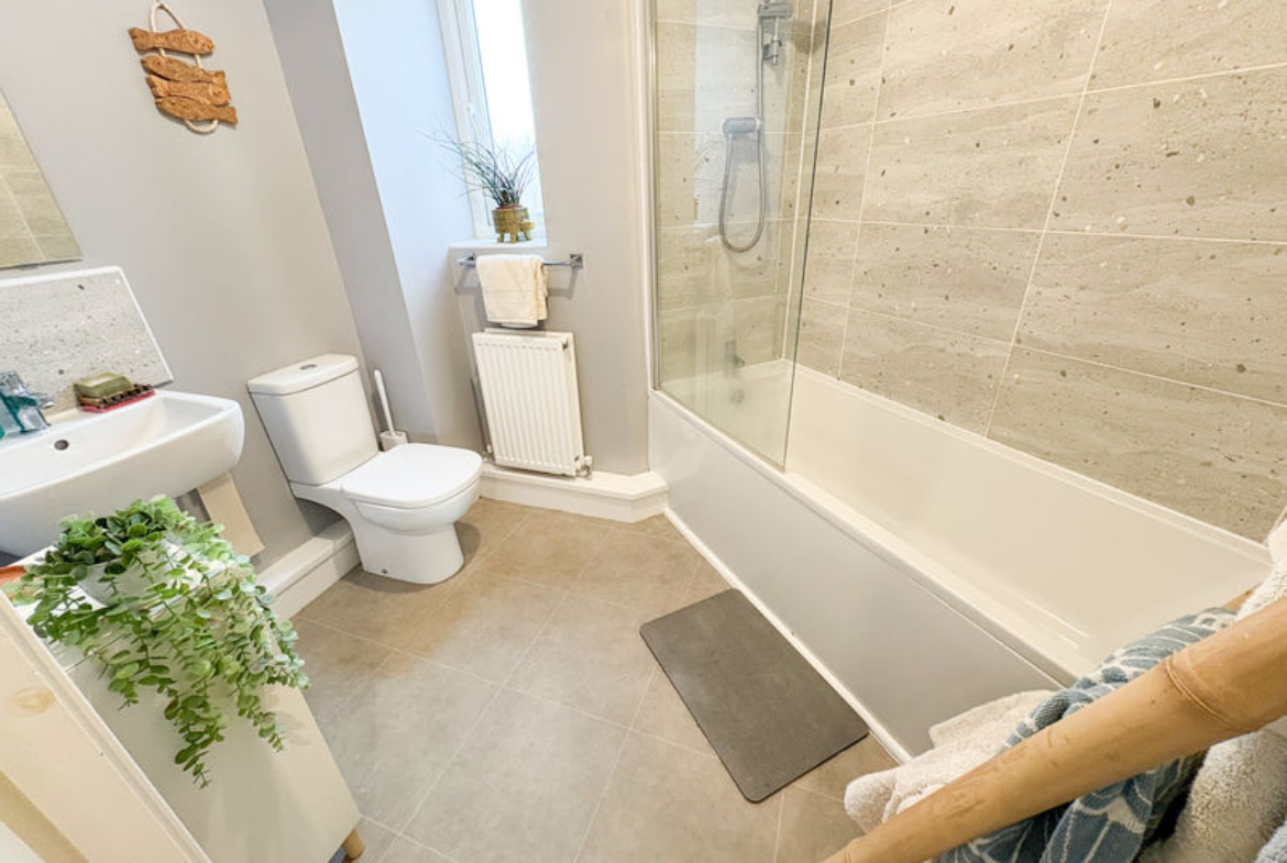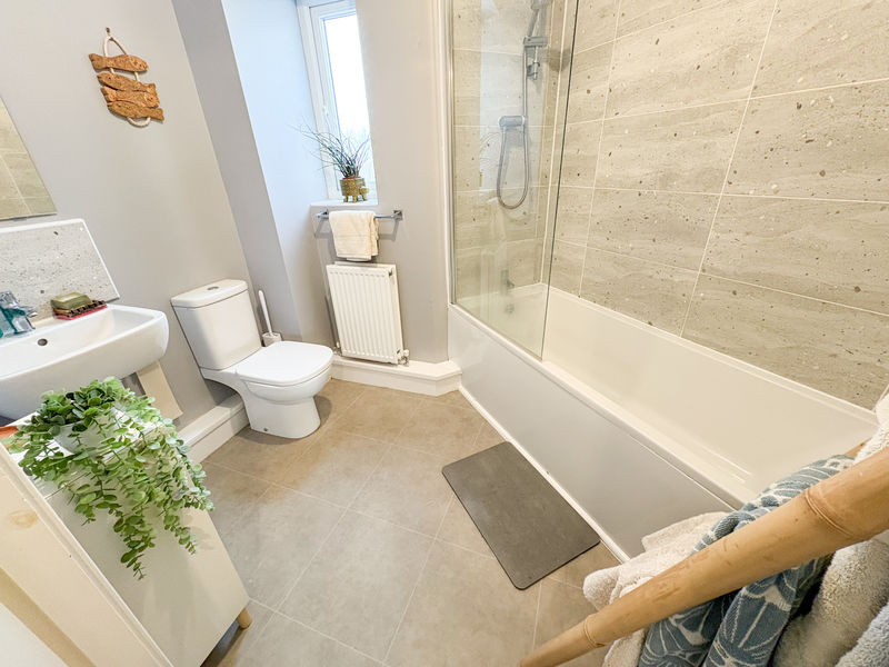 FAMILY BATHROOM: 3 piece suite comprising panelled bath, wash hand basin and low level wc, double glazed window to rear and double radiators as well as part tiling to walls.