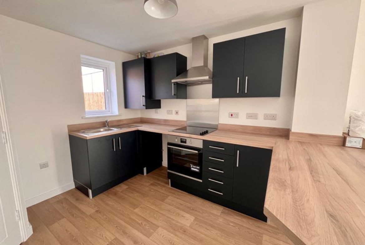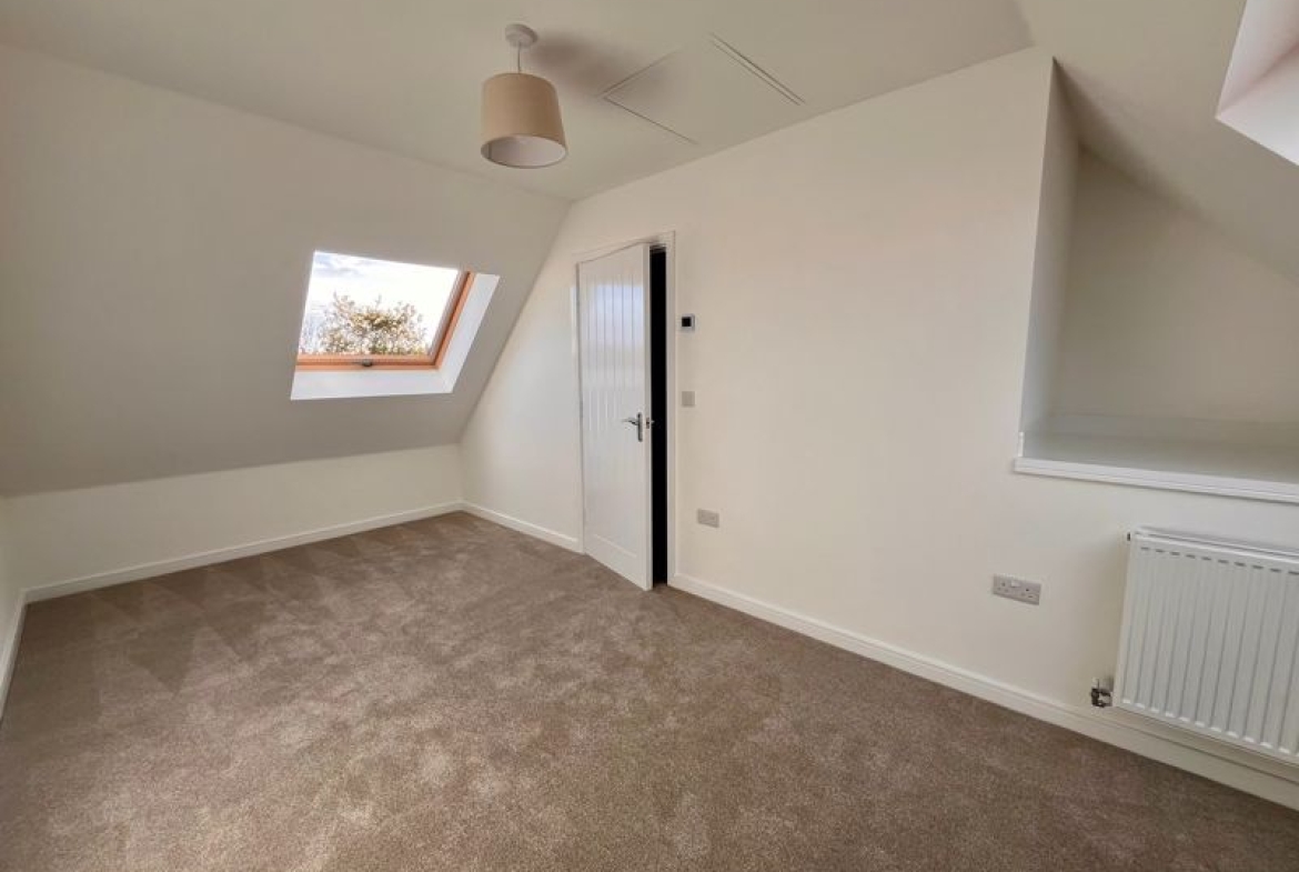 The house offers two double bedrooms, including an attic bedroom, and a single bedroom that would be ideal as a nursery or home office, complemented by a main bathroom with a mains shower. As this is a brand new home and hasn’t been lived in yet, all flooring and décor have been newly fitted.