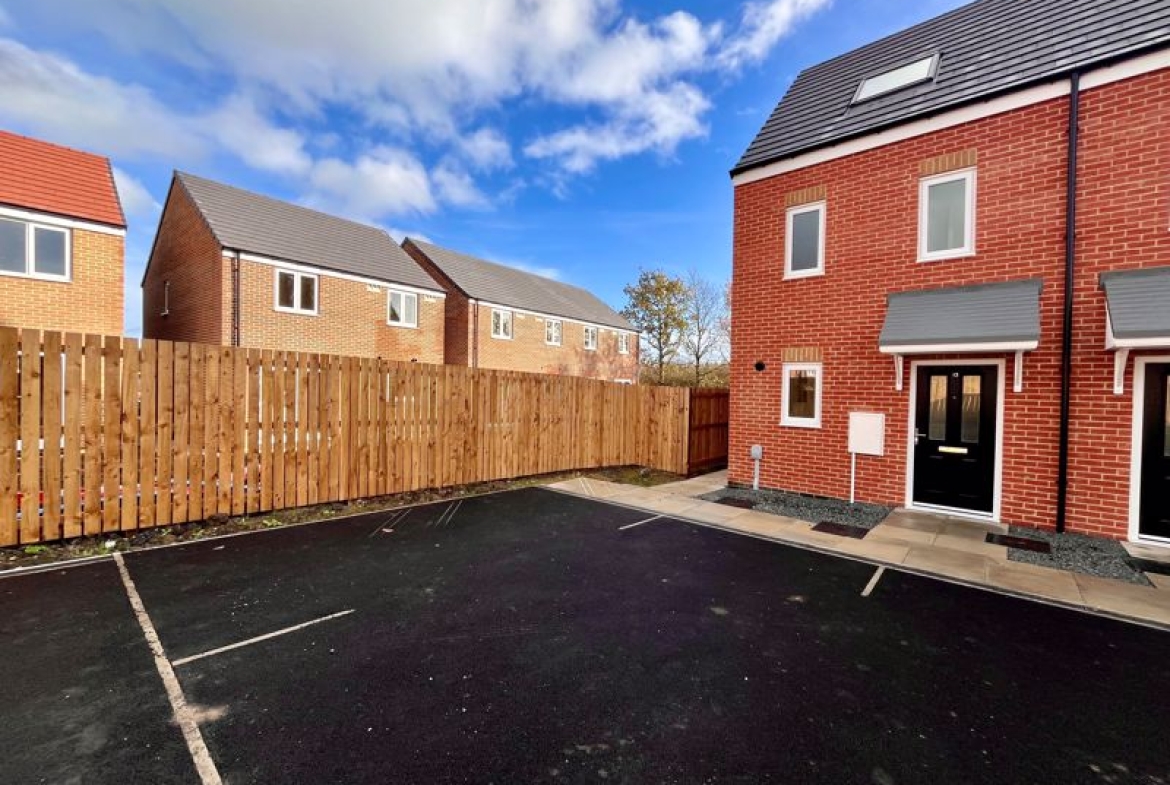 Available to rent now – an immaculate three-bedroom/three storey end-terraced house situated in the new development at Togston Park in North Broomhill. The property features an open-plan kitchen and reception area with direct access to a private garden, ideal for families or young professionals.