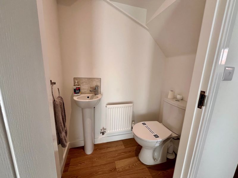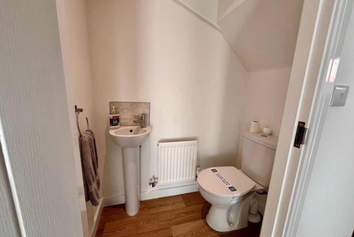 Close-coupled W.C | Pedestal wash-hand basin | Radiator | Vinyl flooring | Extractor fan | Downlight