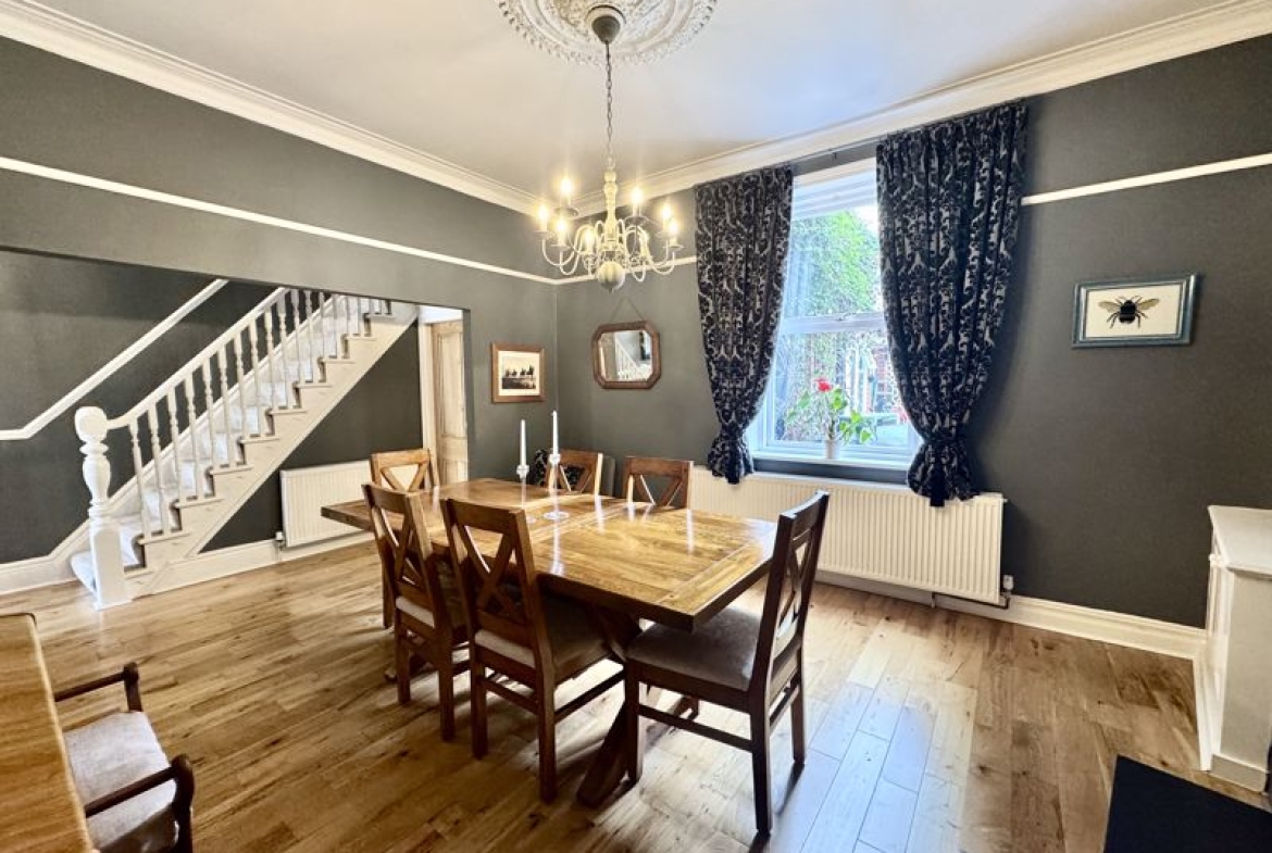 A fabulous location just a short walk from the Metro, vibrant town centre, beach and within catchment for excellent local schools. This beautifully presented and updated throughout with a blend of original features and stylish upgrades, perfect for modern living. Showcasing an impressive vestibule and hallway, lounge with feature bay window and reclaimed period fireplace with cast iron open fire, original wood flooring, separate dining room with fabulous wood burning stove fire promising cosy winter days and evenings, the dining room has been opened up through to the hallway creating space and light to this lovely dining room. Stunning re-fitted and extended family kitchen which flows beautifully into the family room, with Velux windows and French doors out to the garden. The kitchen is stylish with Inglenook and integrated appliances. Wonderful split level, first floor landing with storage, loft access with pull down ladders, which we understand has been mostly boarded for storage purposes. Luxurious, Victorian style bathroom with freestanding bath, separate shower and forest waterfall spray. Three generous bedrooms, principal bedroom with fitted storage. Large private rear town garden with raised borders and foliage, excellent brick storage area with power, perfect for bikes and storage, front town garden with tiled path and block paved patio. Freehold. EPC: D, Council Tax Band: B. Gas, Electric, Water, Heating, Drainage: Mains Connected. Broadband: Fibre, Mobile Phone Blackspot: No