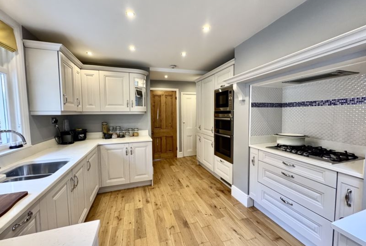 • Gorgeous Family Kitchen and Open Plan Family Room with Ingelnook and French Doors
