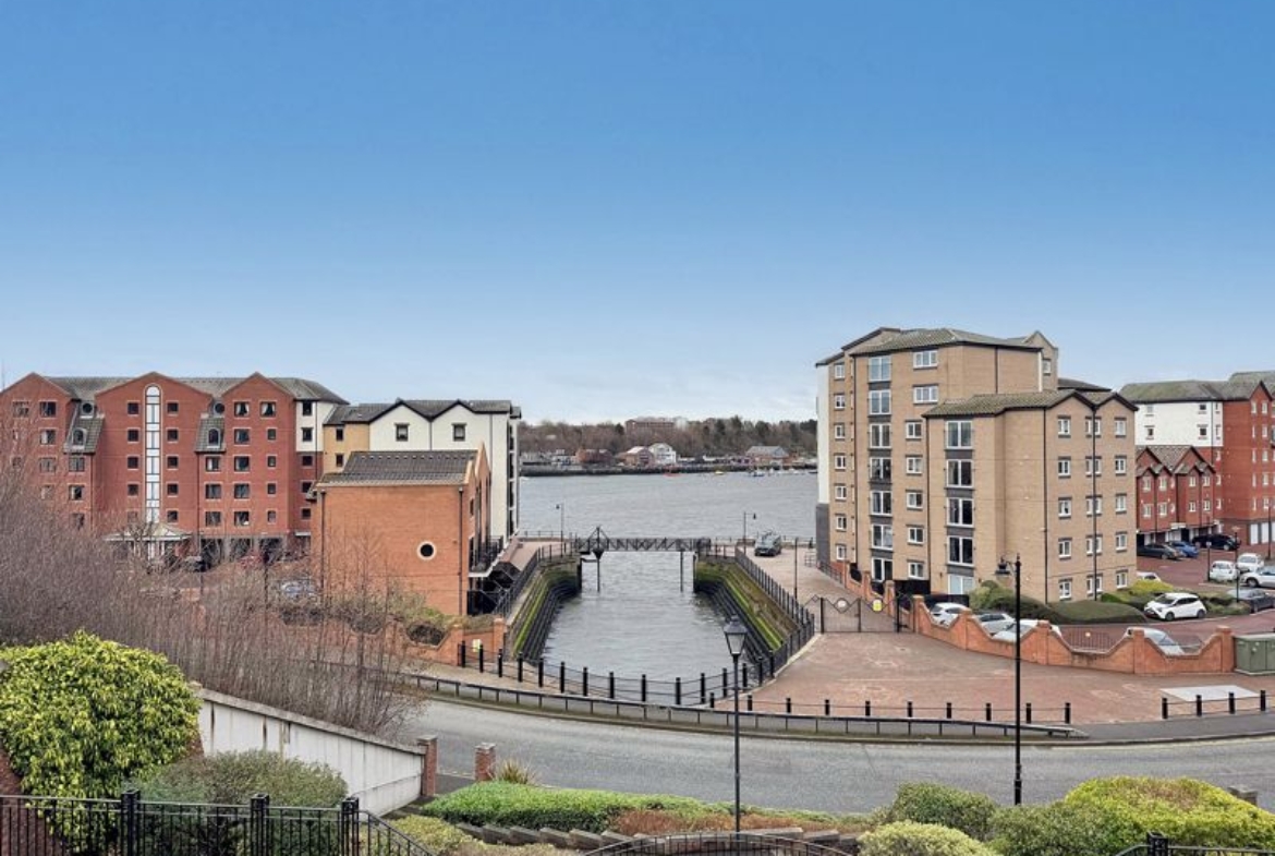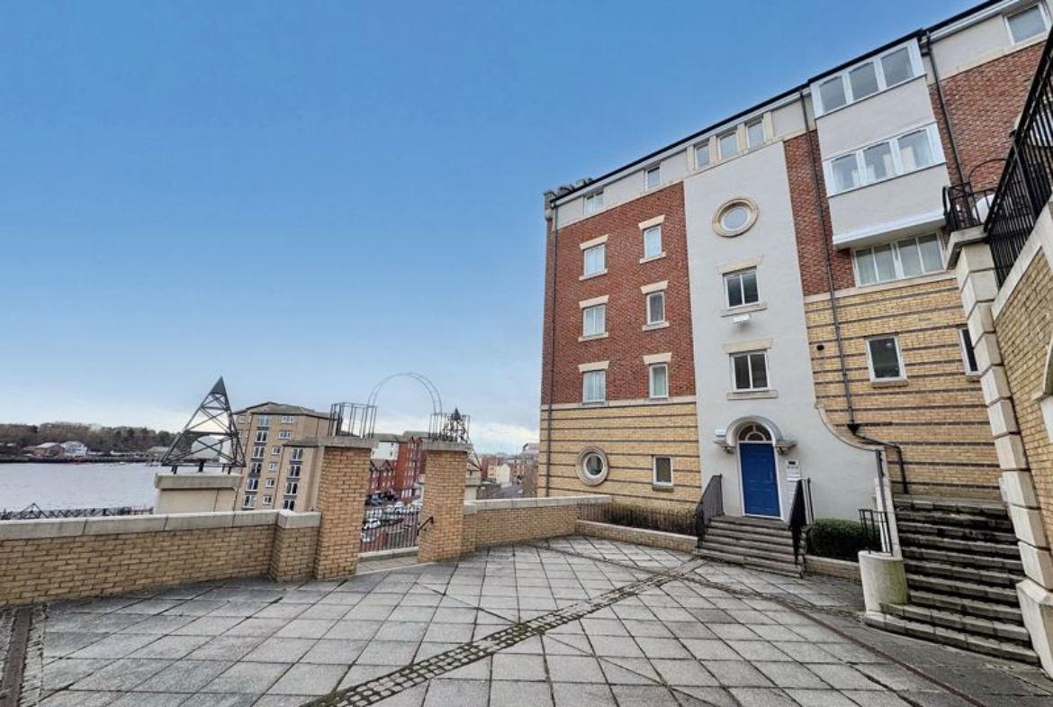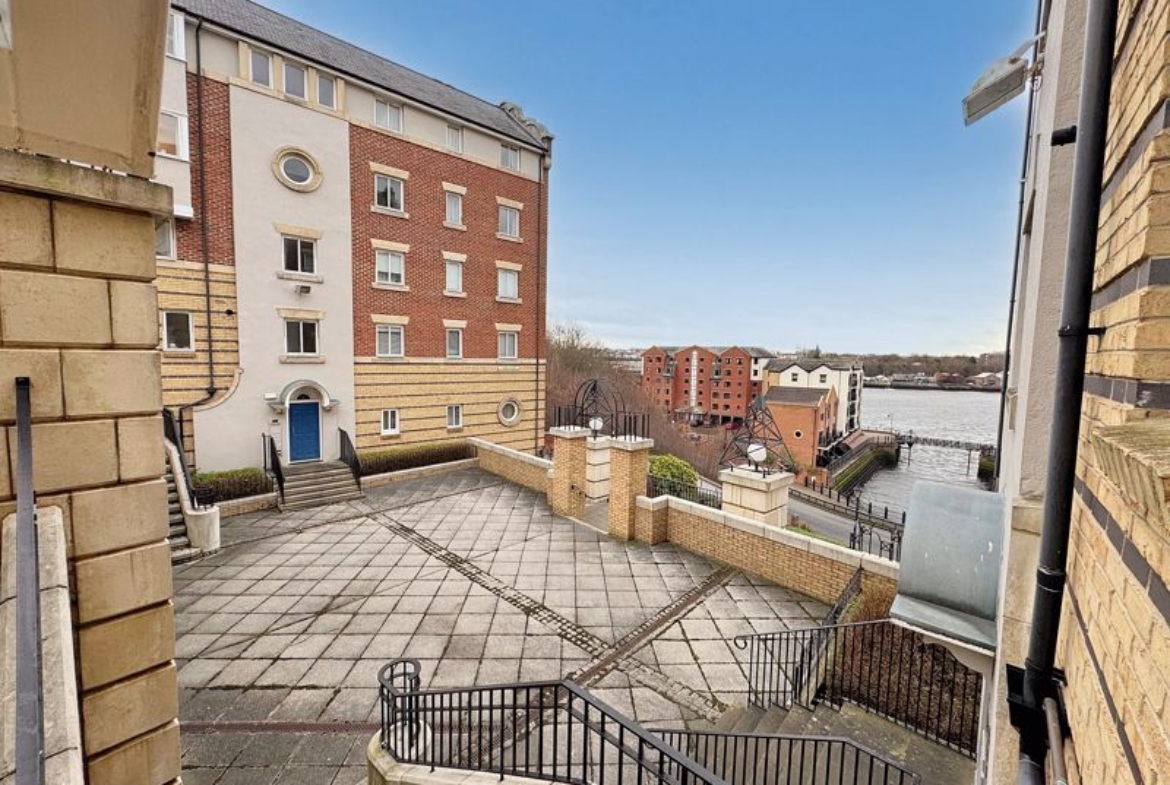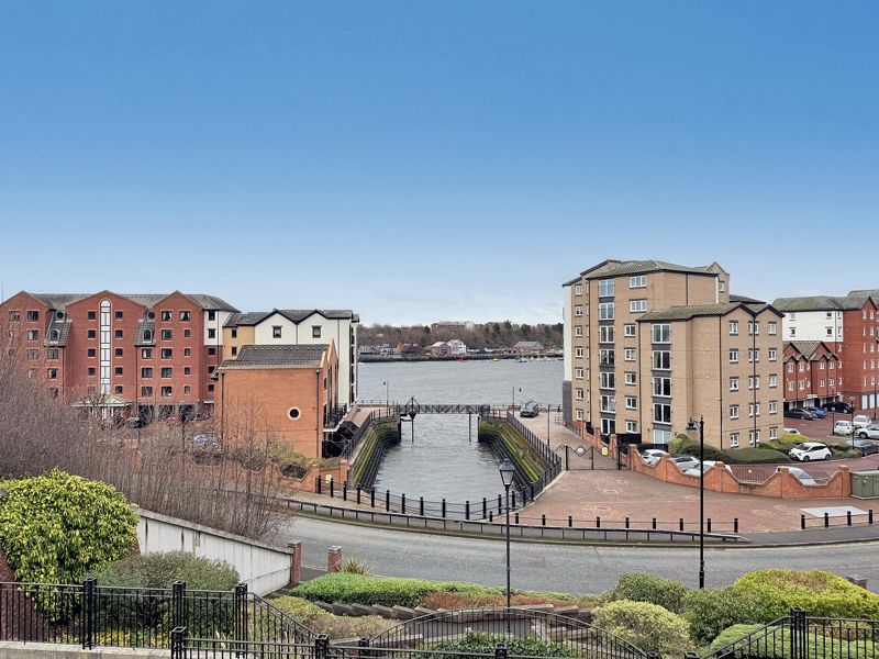 Superbly located, enjoying an elevated position on the banks of our vibrant North Shields Quay, with panoramic views from the Courtyard area over the river. Just a short walk from the bustling Quay with restaurants, bars and local, independent shops. Close to North Shields town centre, Metro, bus routes and approximately a 15-20 minute walk from Tynemouth Village and beach. Union Stairs is a contemporary, gated development overlooking the river, with secure entry system and fobbed gates providing access to both the courtyard and the under-ground parking area. Our two story property enjoys a lift within the block and spacious room sizes with a secure entry system, hallway with storage, ground floor bathroom with shower, two bedrooms, bathroom with shower, turned staircase up to the first floor. The superb sized lounge enjoys a dual aspect with side river views and measurements of 19’5 x 12’6, flowing into the kitchen area, also benefiting from integrated appliances. The property benefits from gas radiator central heating system and double glazing. Secure, allocated parking bay, communal courtyard town gardens. Long Lease of: 999 years from 1/1/1997 – with 917 years remaining. Management Fee and Ground Rent: £200 per month. Gas, Electric, Water, Heating, Drainage: Mains Connected. Broadband: Fibre, Mobile Phone Blackspot: No, EPC: C, Council Tax Band: B