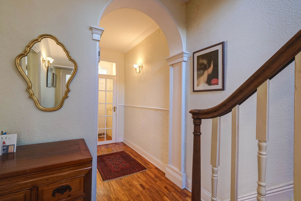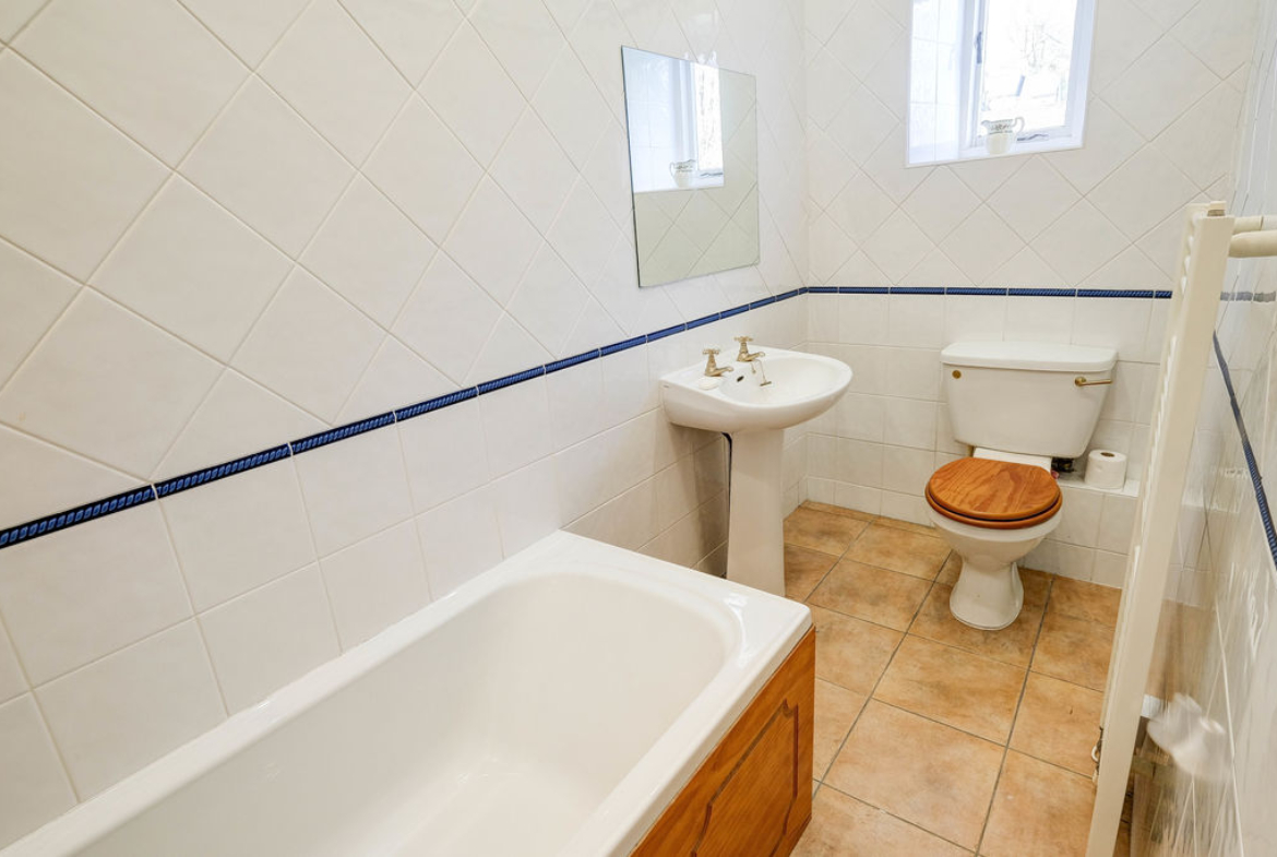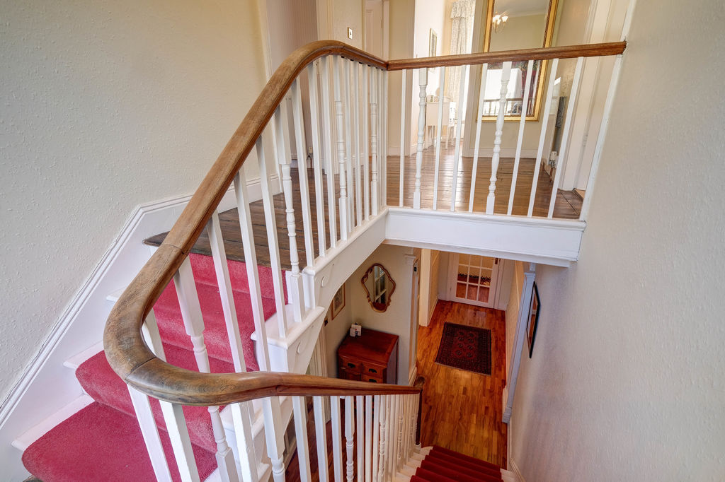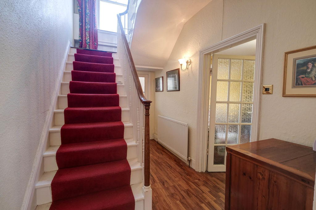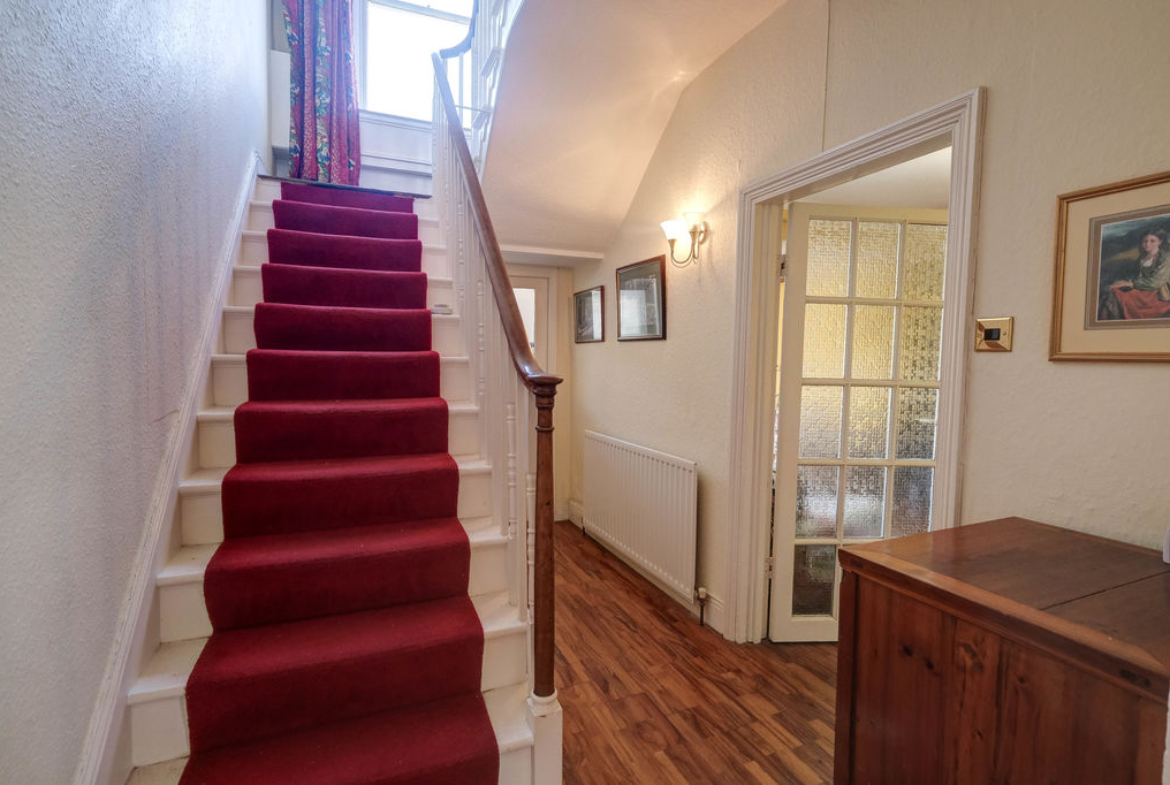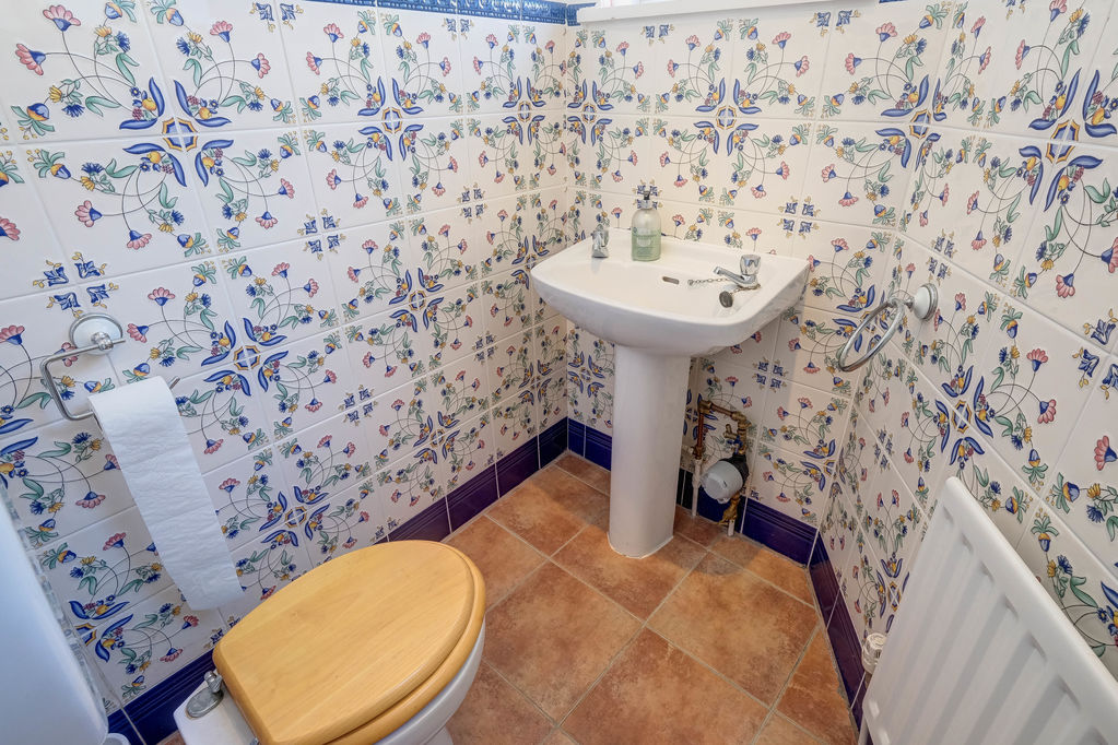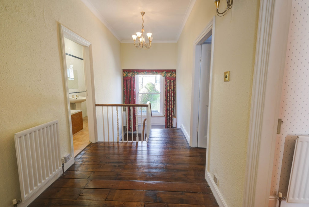 The downstairs w.c. is decorated with attractive and colourful wall tiling and tiled floor. To the first floor, all the rooms have original timber flooring and the picture window on the half landing floods the galleried landing area with natural light, this generous space will accommodate a study desk.