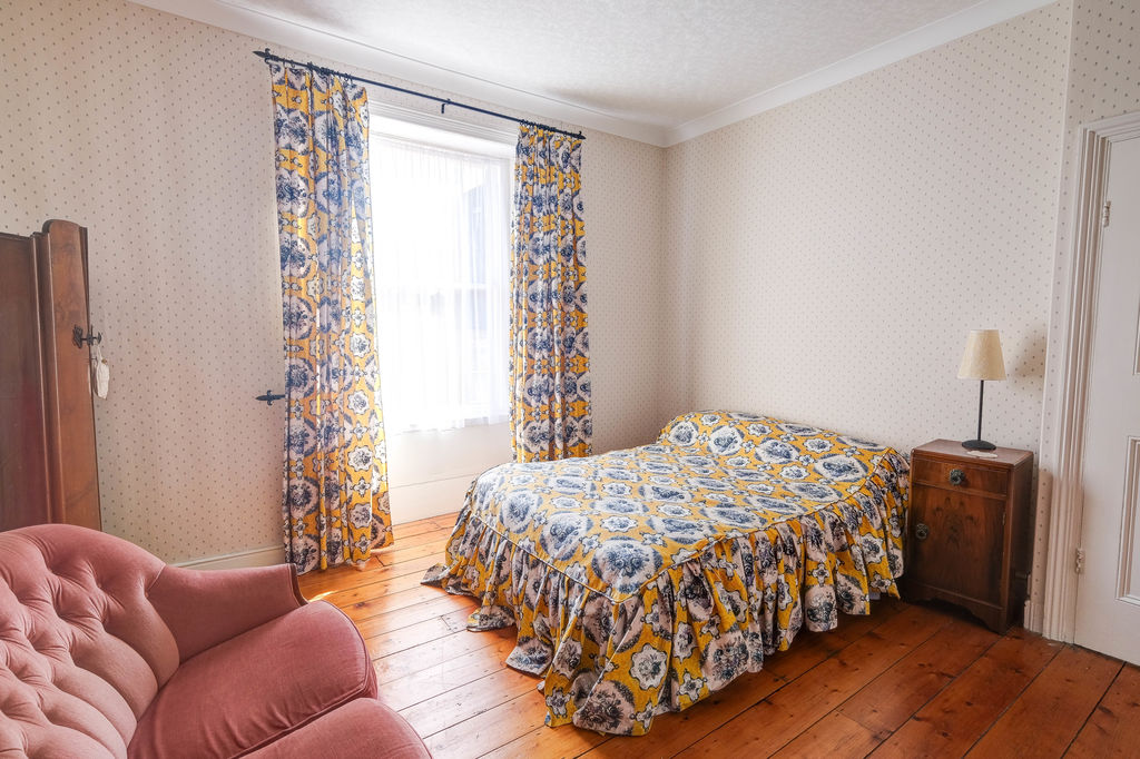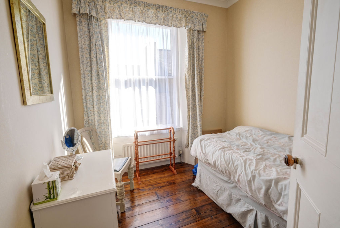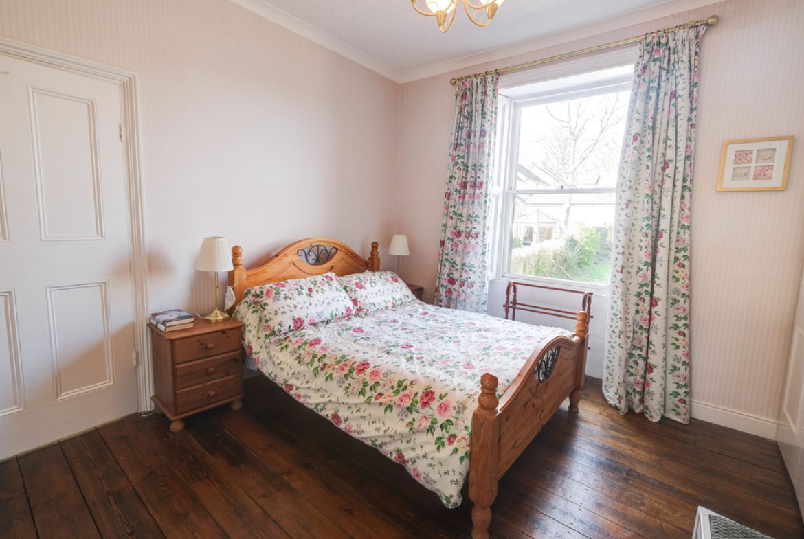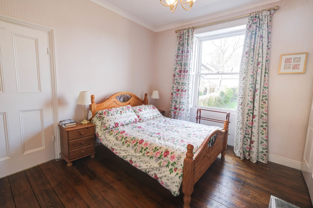 The double bedroom to the rear is a good size with built in wardrobes and cast iron fireplace and the main bedroom to the front is spacious with the third bedroom being a large single with plenty of space for furniture. There is a family bathroom with a bathroom and shower over. Outside to the front steps lead to the timber front entrance door and to the rear a courtyard is the perfect sitting place to enjoy the warmer months of the year. Particular mention should be made of the generous and elevated garden accessed by steps and currently laid to lawn. Enclosed by timber fencing and a stone wall, the garden affords the buyer with scope to landscape further.
