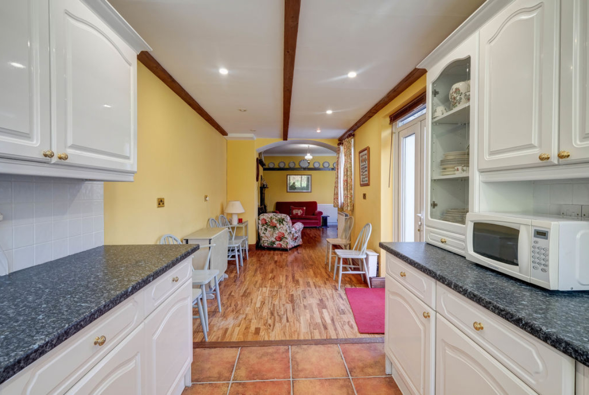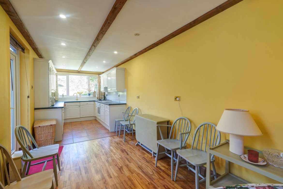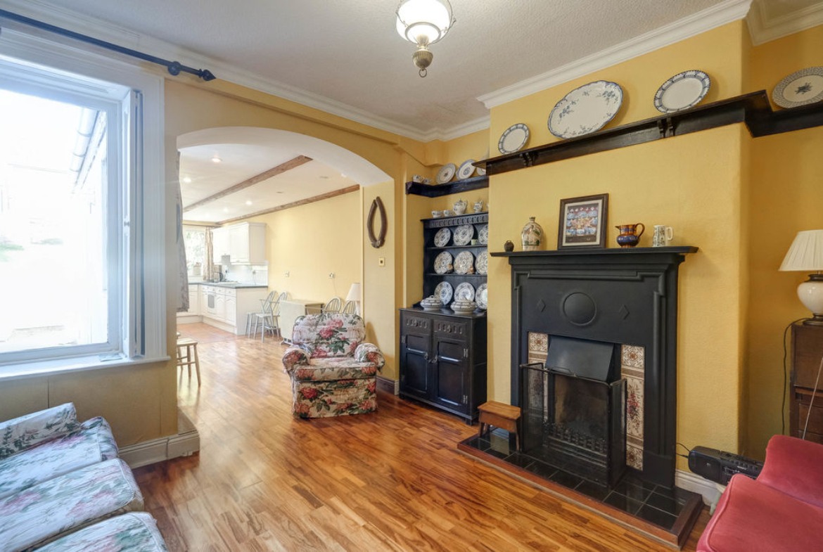 Steps to the entrance door lead into a lobby and a glazed door into the welcoming hallway with an original spindled balustrade takes you to a half landing and onto the galleried first floor landing. The lounge to the front is bright and airy with a fireplace creating a central focal point giving the room a cosy atmosphere. The sitting room with an original cast iron fireplace with tiled inset, hearth and open fire grate is perfect for cold winter days. Opening into the generous dining kitchen has ample space for a dining table, perfect for everyday eating or entertaining and the kitchen is well appointed with a range of wall and base units with a fitted gas hob, electric oven and extractor along with an integrated fridge, washer and dryer. French doors lead out from the side of the kitchen to the courtyard and garden.