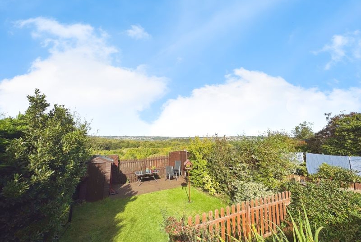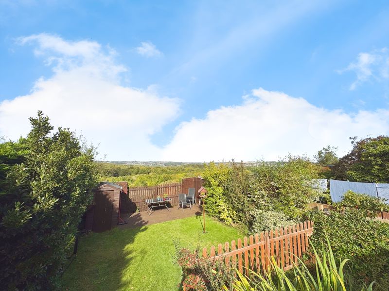 To the rear of the property there is a lawned garden with decked area and Vally views. To the front there is a driveway providing off street parking leading to a garage which is plumbed for washing machine.