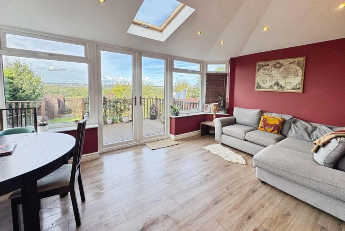 One of the crowning glories of this property is the sunroom, providing a lovely space to enjoy your morning coffee or evening read, while taking in the stunning views that surround this home. But the property’s appeal is not just limited to its interior. It also offers an inviting rear garden with both decking and lawn areas, perfect for barbecues and summer gatherings.