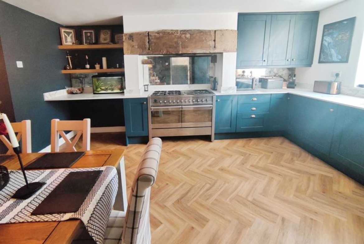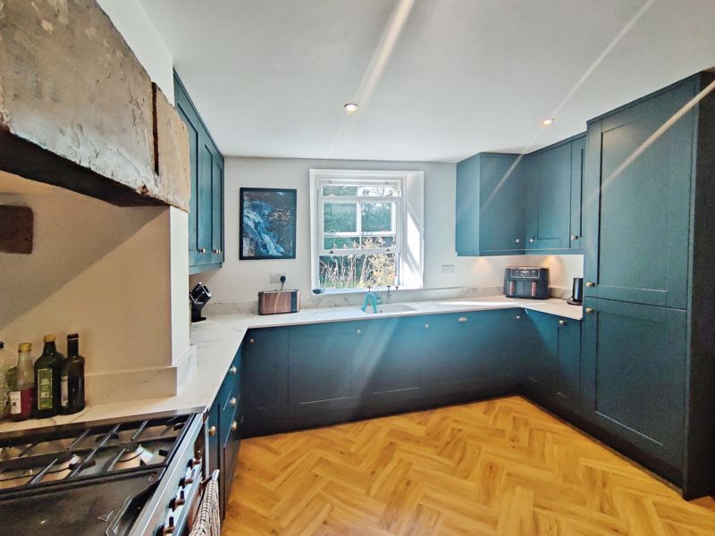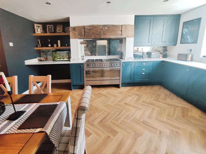 Double glazed window to rear, double radiator, fitted with a range of wall, floor and drawer units with co-ordinating roll edge work surfaces, co-ordinating sink unit and drainer with separate taps, built in electric range oven, integrated fridge freezer, washing machine and dishwasher, laminate flooring, spotlights, door to boot room.