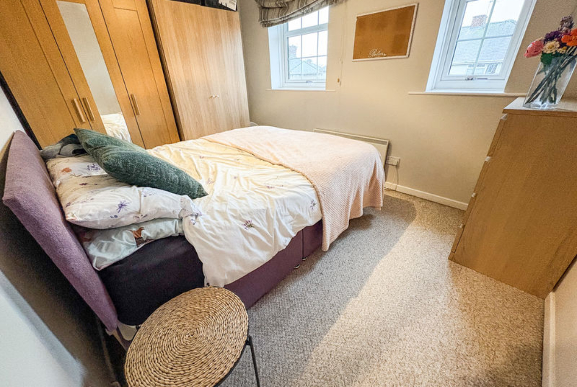 BEDROOM TWO: (front): 12’62 x 8’81, (3.84m x 2.68m), double glazed window to front and electric heater.