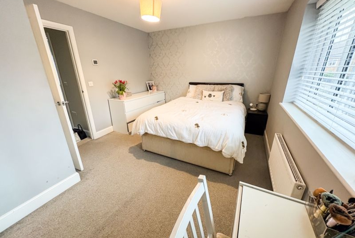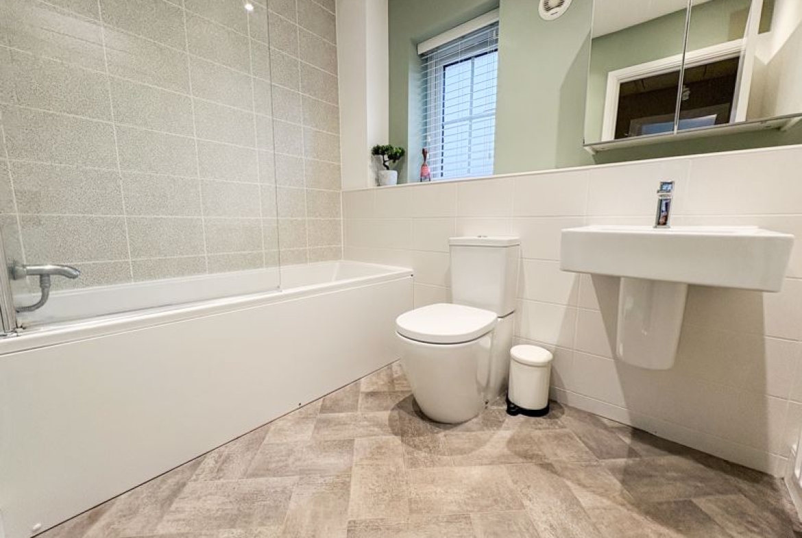 Upstairs, there are two generously sized bedrooms, each tastefully decorated and offering ample storage. The master bedroom provides a peaceful retreat, while the second bedroom makes an excellent guest room, nursery, or home office. A stylish and contemporary family bathroom with modern fittings, a bath with shower over, wash basin, and WC completes the first-floor accommodation.