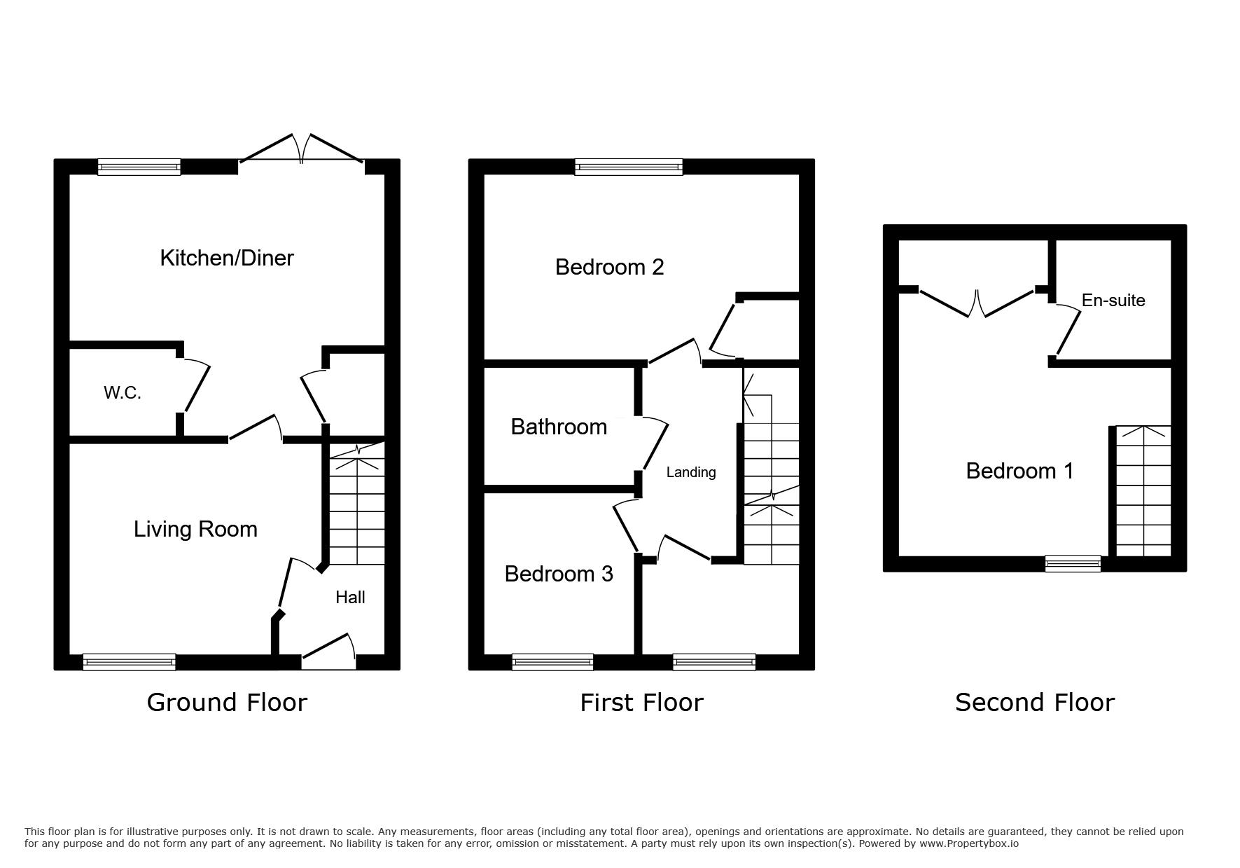 The ground floor features a welcoming reception room with large windows, leading through to a modern kitchen with dining space, integrated appliances and French doors opening onto a large rear garden, perfect for everyday family life. There is also a convenient downstairs WC. Upstairs, the main double bedroom benefits from an en-suite and built-in wardrobes, the second bedroom is another double with built-in storage, and there is a spacious single bedroom. A family bathroom completes the accommodation. Outside, a double driveway provides off-street parking.