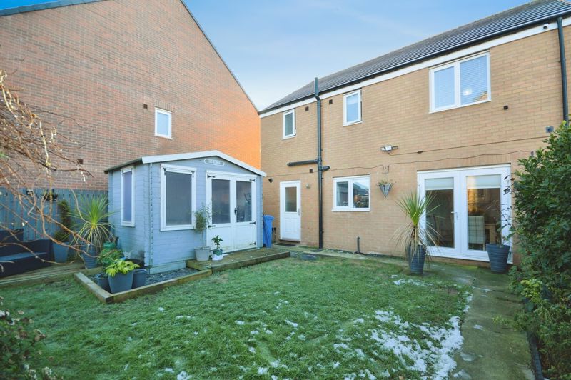 Landscaped rear garden with lawn | Patio area | Decking | Summer house | Electric power sockets | Gate access leading to the front of the house | Rear gate leading to the garage