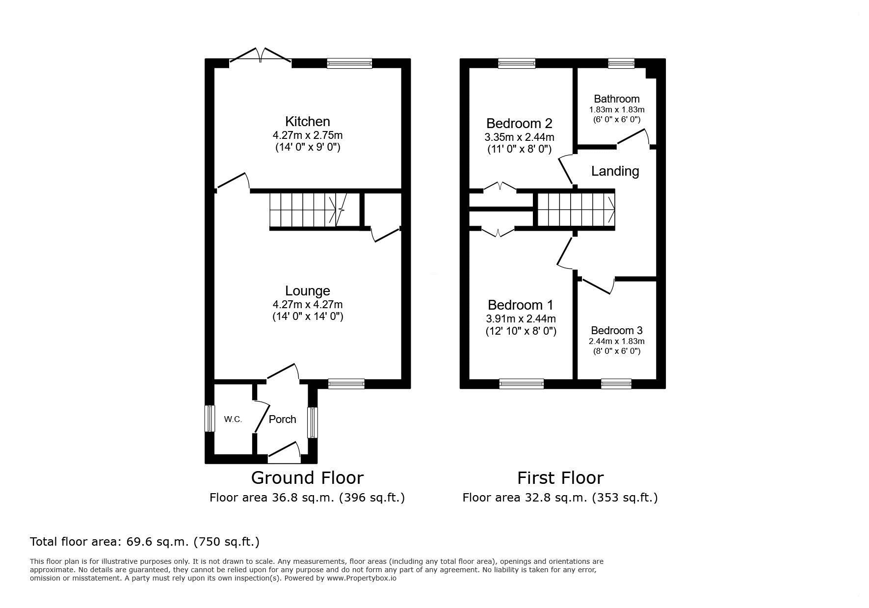 Porch: 3’04 x 5’05 (0.92m x 1.53m)