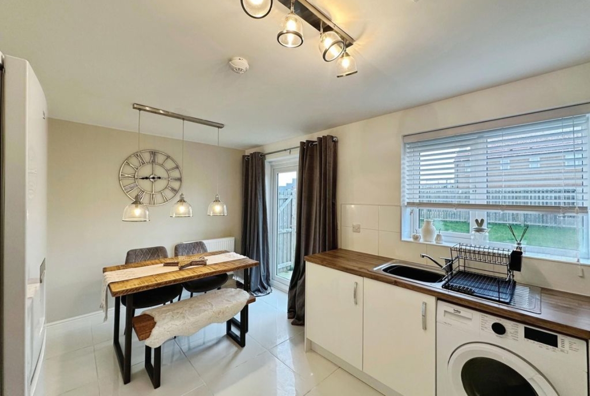 The property briefly comprises:- Entrance hallway, downstairs W.C., a generous sized lounge that has been finished with wood flooring and modern décor. The bright and airy kitchen/diner is a great space for families with plenty of room for your dining table and chairs. The modern kitchen has been fitted with a range of white gloss wall and base units, offering plenty of storage and views over the rear garden, which can be accessed via the double patio doors. Appliances include a gas hob and electric oven.