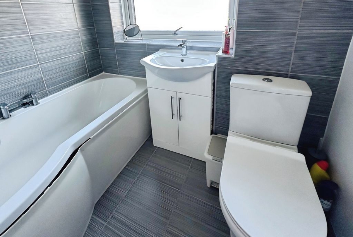 To the first floor, there are three good-sized bedrooms and a family bathroom fitted with a white three-piece suite and shower over the bath.