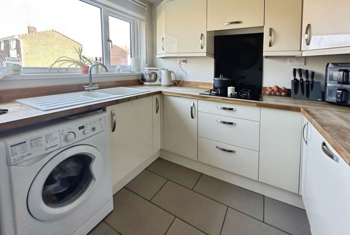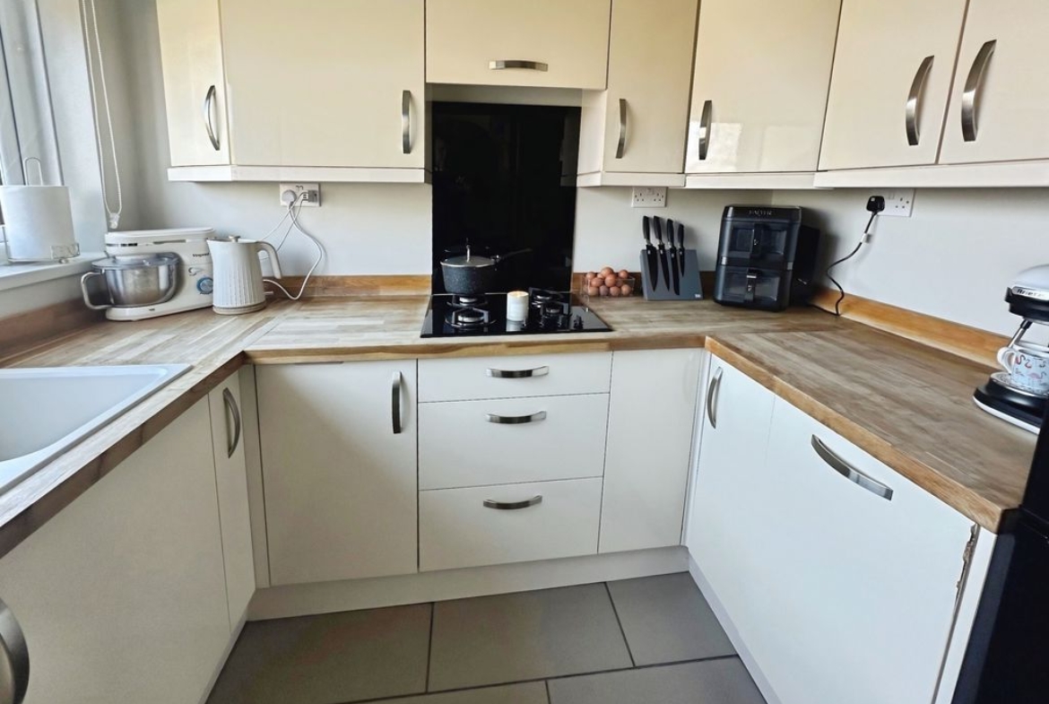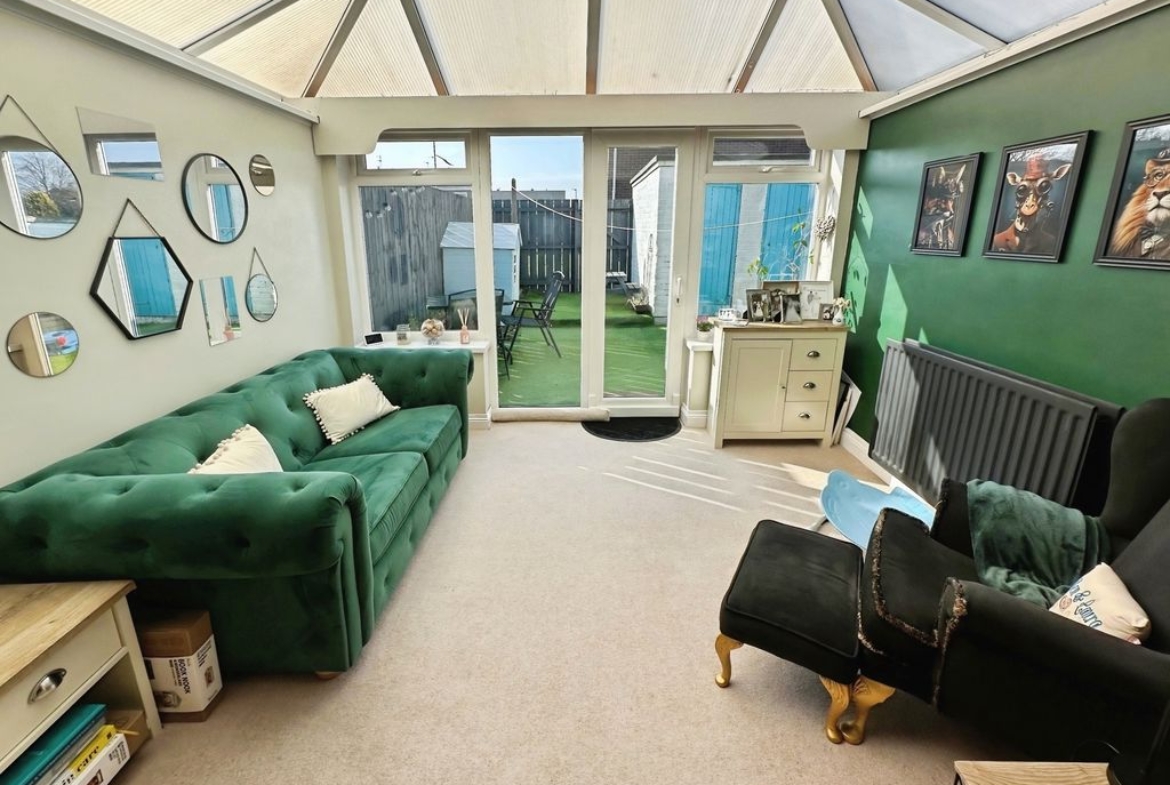 This well-presented three-bedroom end of terrace home offers spacious and well-proportioned accommodation throughout, making it an ideal choice for first-time buyers, families, or those looking to downsize. The ground floor features a welcoming entrance hallway, convenient cloakroom/WC, a generous lounge and dining area, and a bright sun room that provides additional living space. The kitchen is fitted with a range of modern units with solid wood work surfaces and integrated appliances.