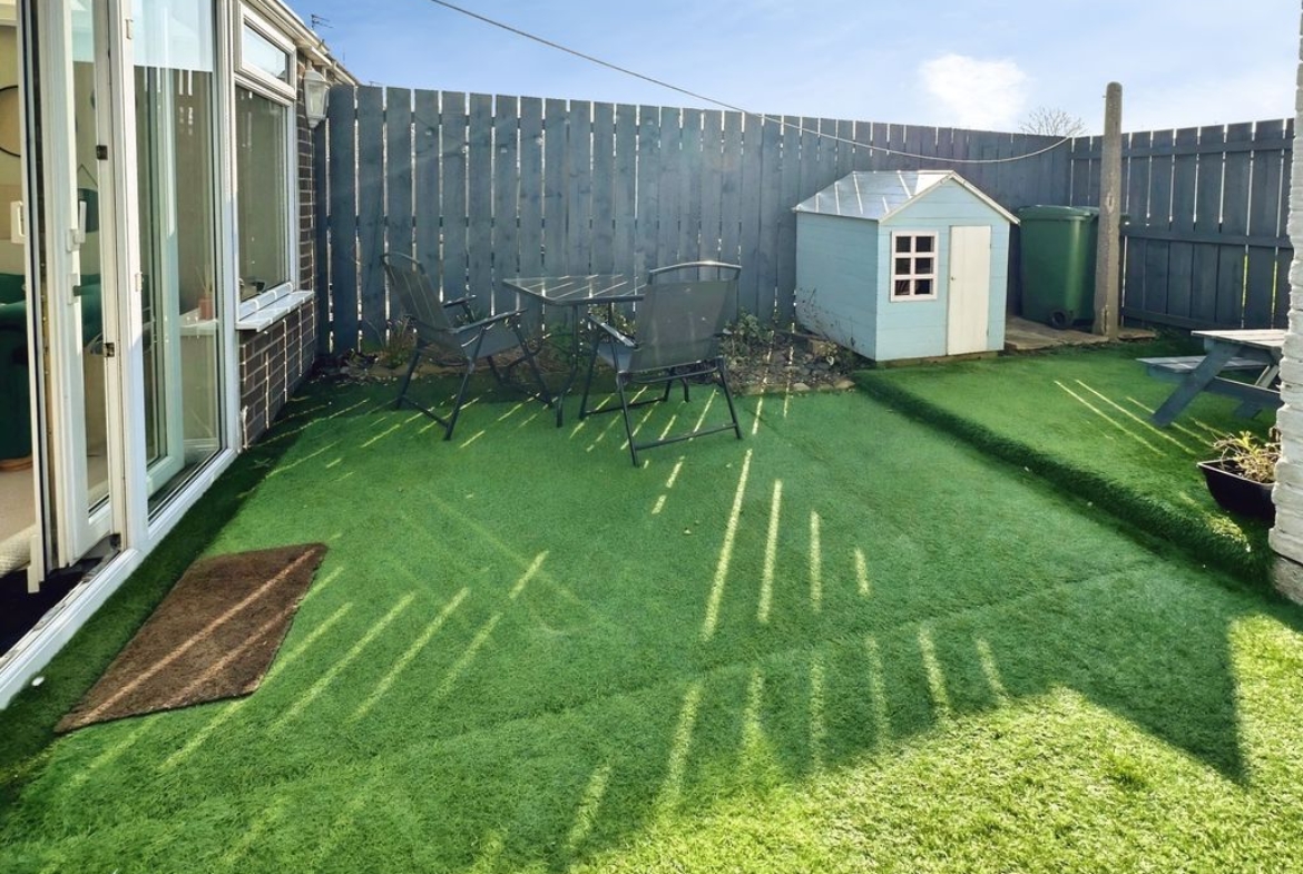 Externally, the property benefits from a lawned front garden with flower borders, along with a private rear yard that includes two useful outhouses for storage.