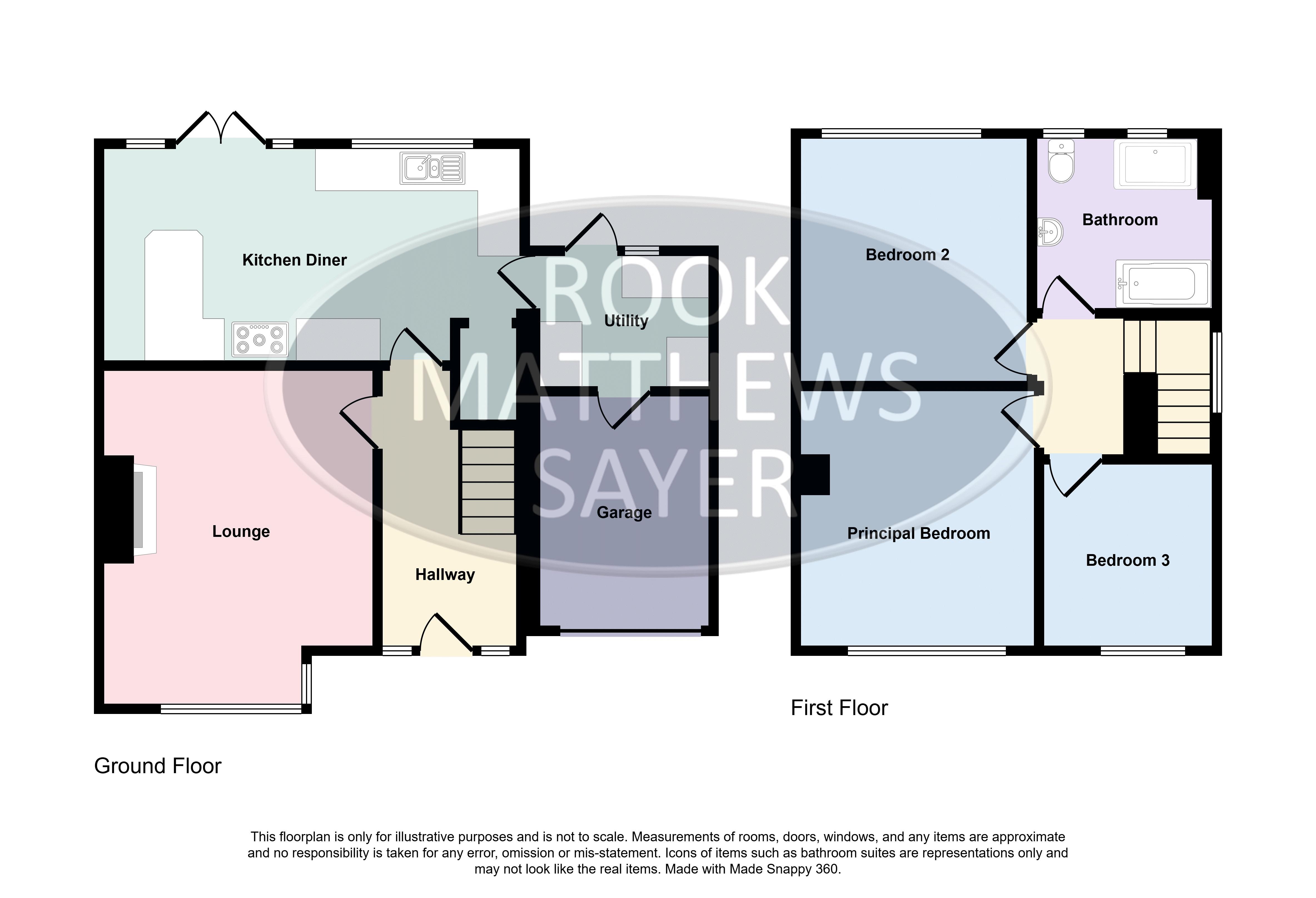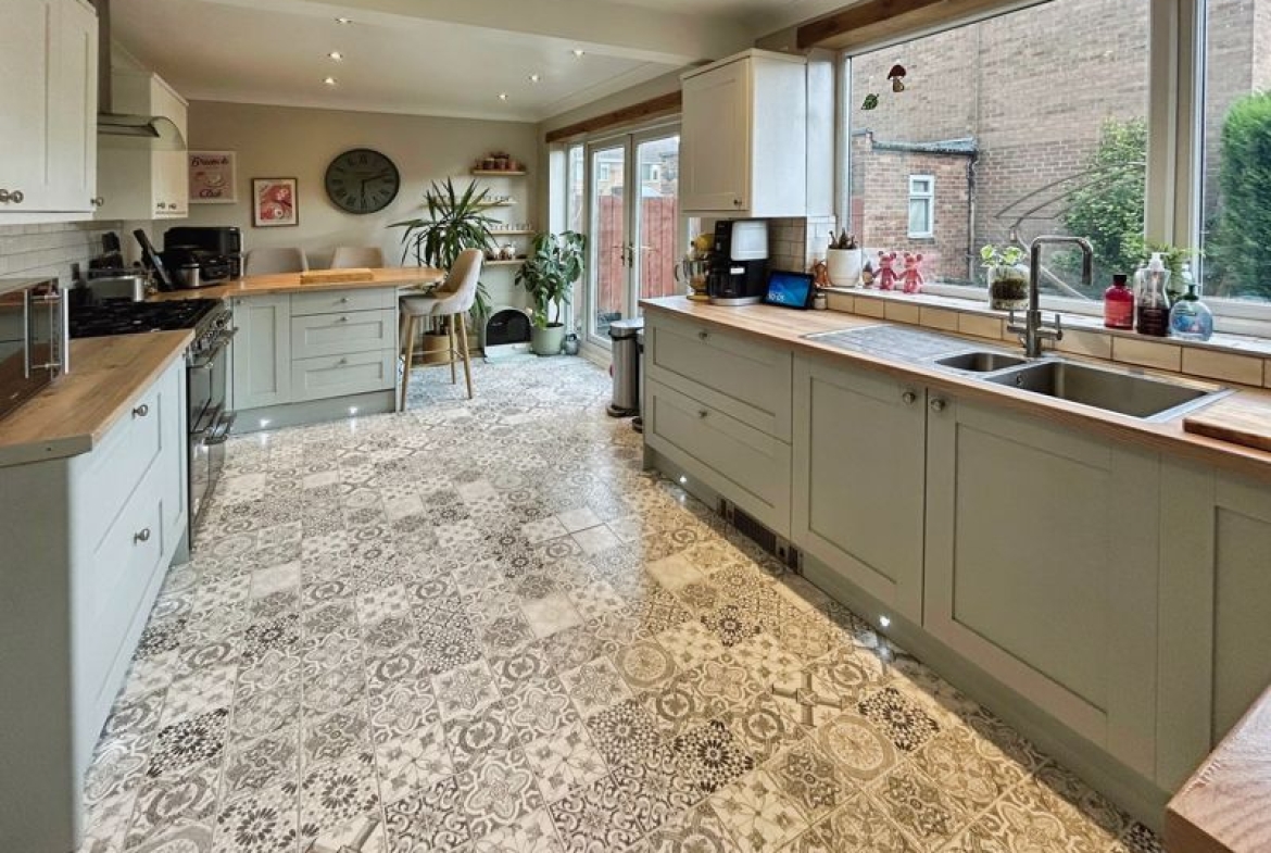 Work surfaces, space for washing machine, space for tumble dryer, combination boiler, door to garage, UPVC double glazed frosted window to rear, UPVC double glazed frosted window door to rear garden.