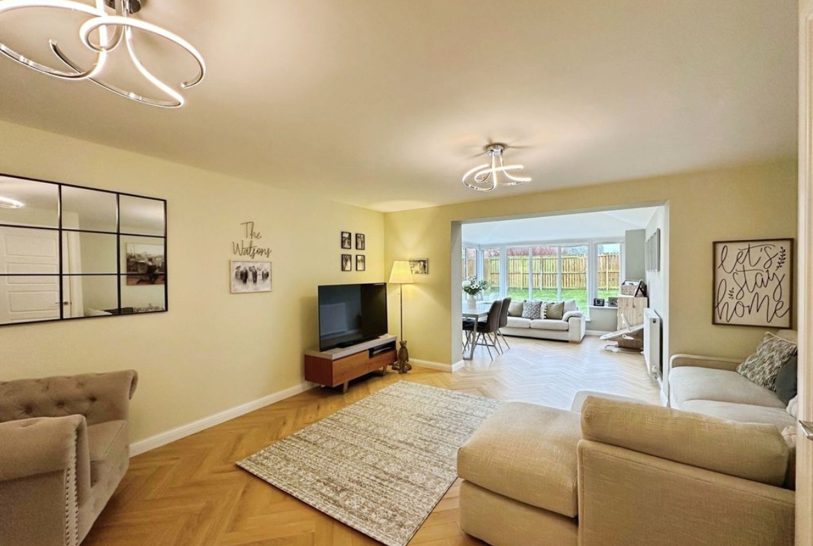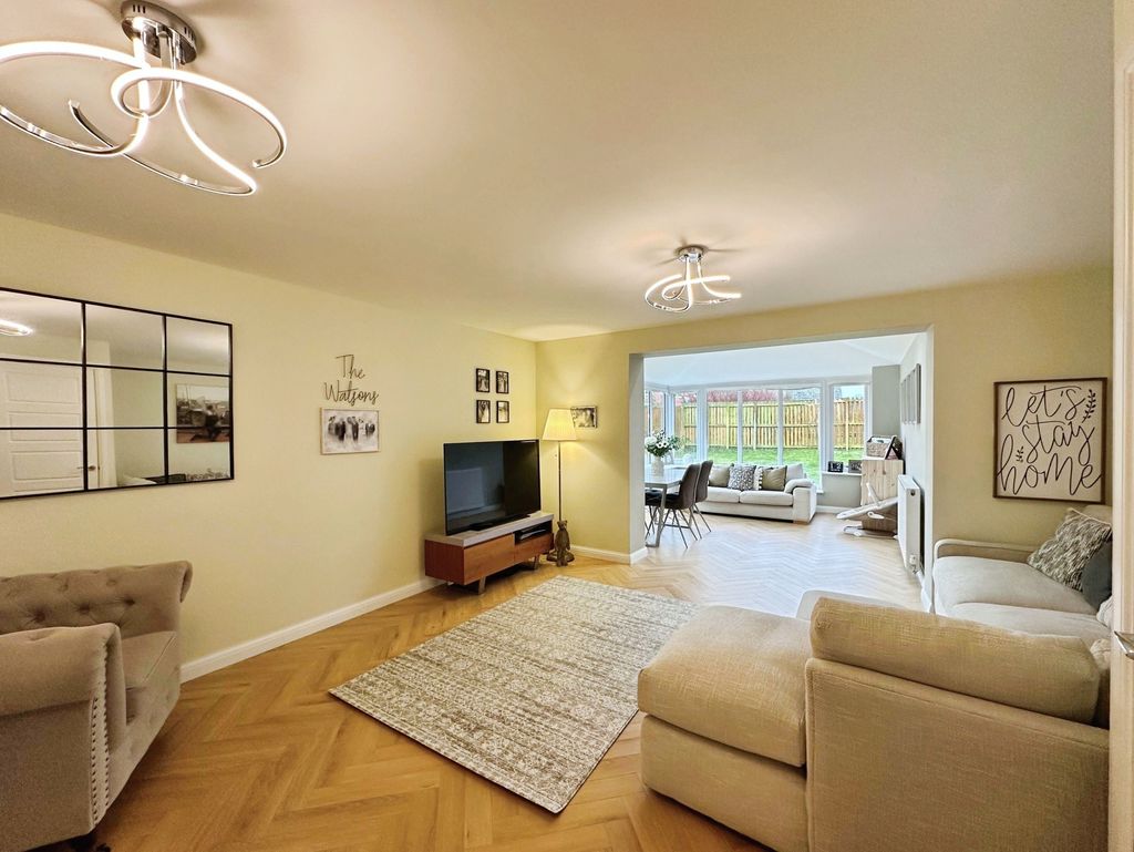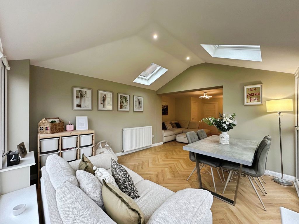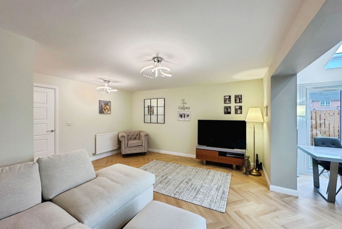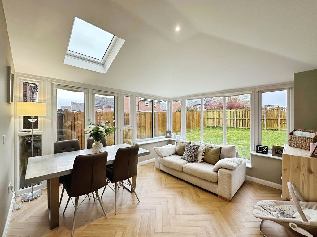 The property briefly comprises:- Entrance hallway, downstairs W.C, and modern kitchen which has been fitted with a range of gloss wall and base units, offering an abundance of storage. The high spec kitchen benefits from views over the green. Appliances include a fridge freezer, washing machine, electric oven, gas hob and extractor. The bright and airy lounge is located to the rear of the property and been finished with modern décor and hardwood flooring. The lounge has been extended to create a sun room, which is a great space for families and offers fantastic views over the rear garden, which can be accessed via the double patio doors.