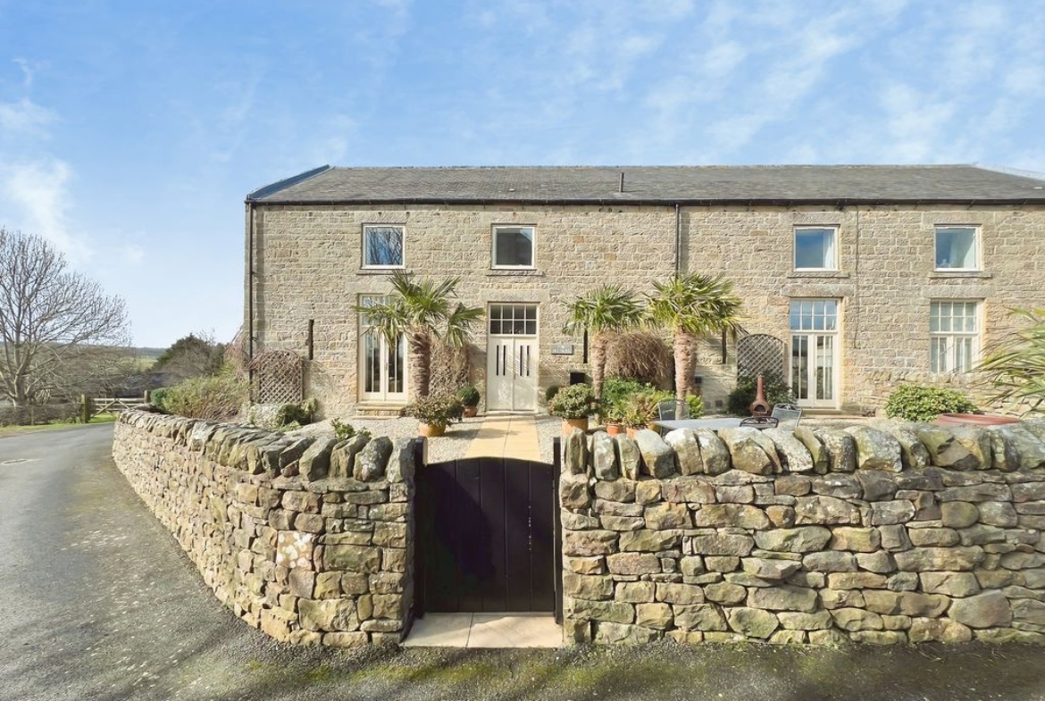 This Grade II listed stone built barn conversion is for sale in the rural hamlet of West Marlish near Morpeth, offering five double bedrooms and flexible accommodation suited to families seeking a green, countryside setting.