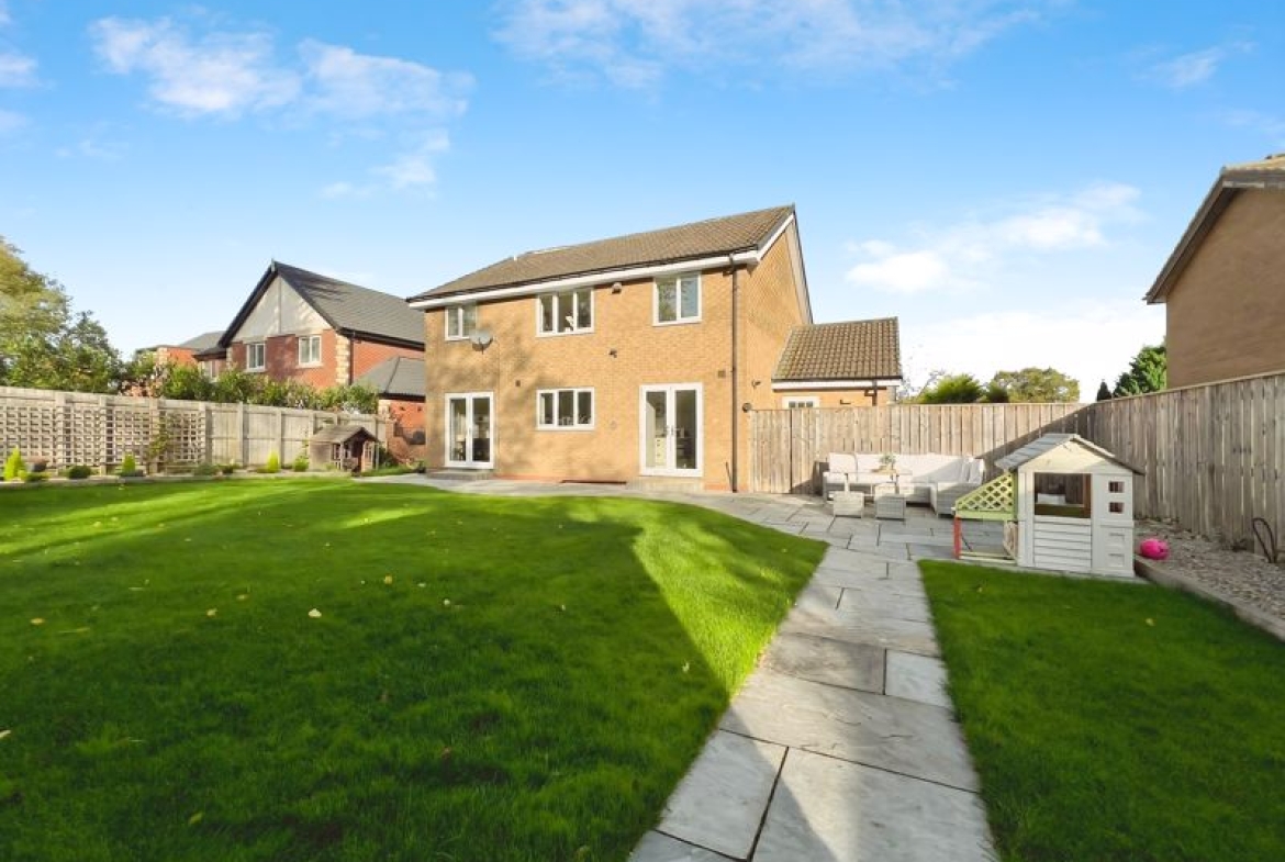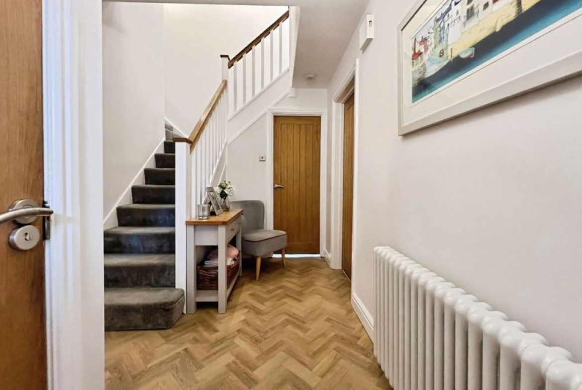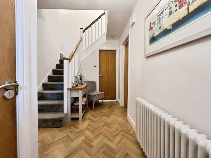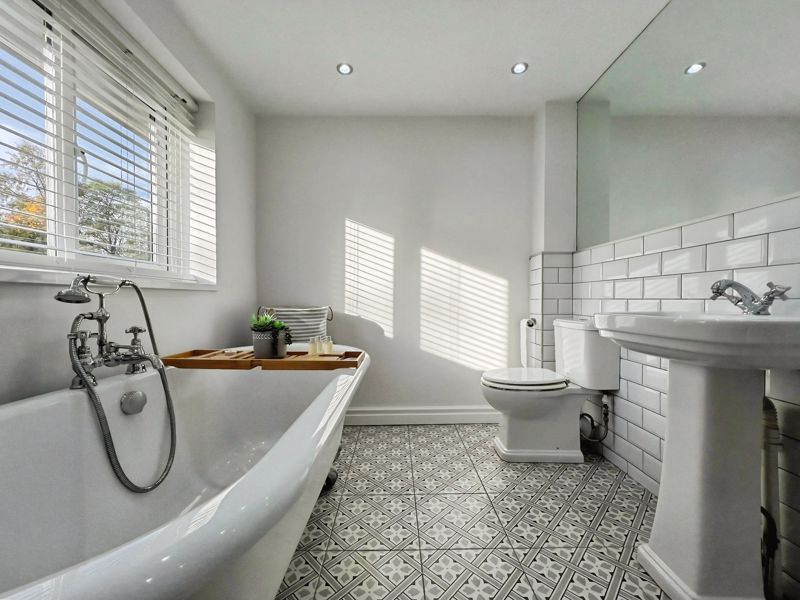 There are four double bedrooms, providing ample space for family and guests. The master bedroom impresses with built-in wardrobes and a spacious en-suite, complete with a heated towel rail, roll top bath, shower unit, and modern fixtures. The family bathroom includes a shower over the bath, custom mirror, and heated towel rail.