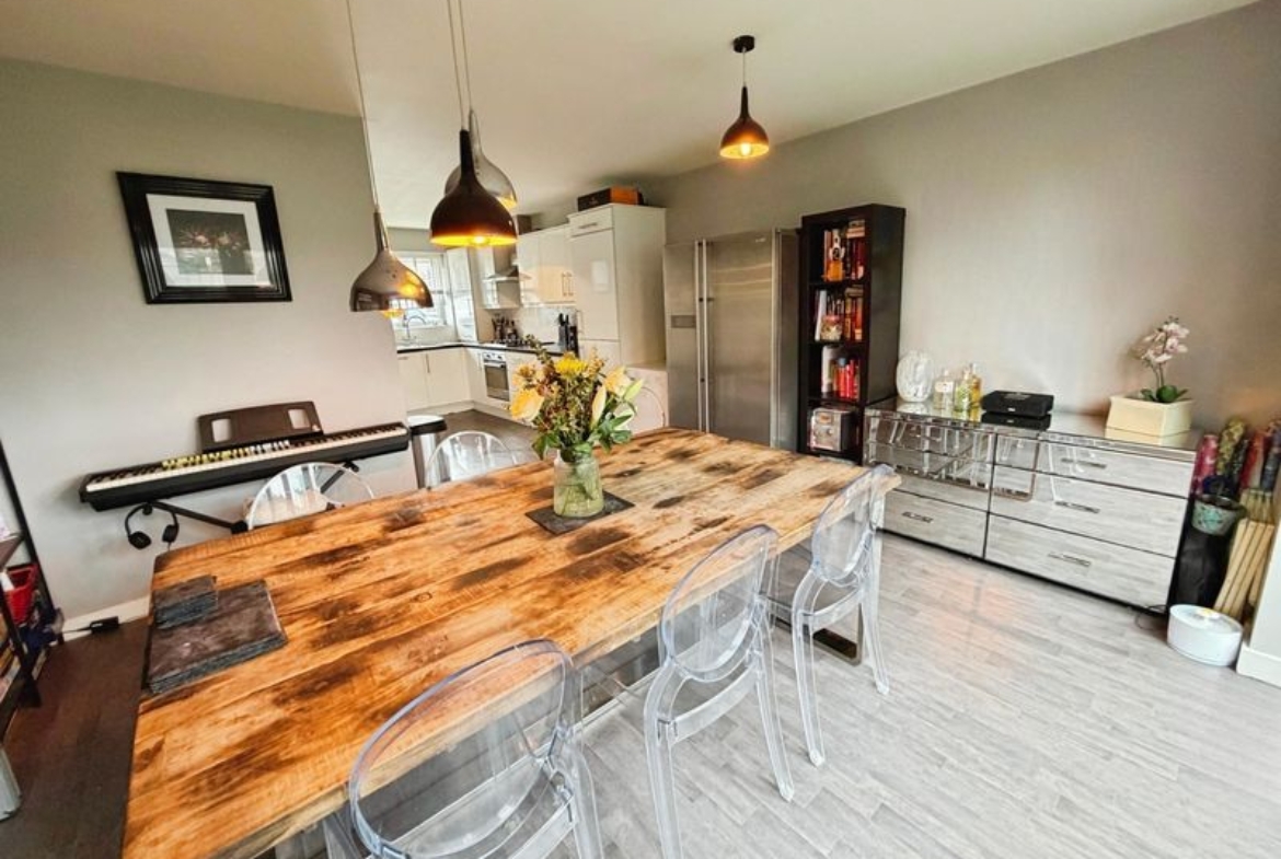 As you step in to this charming home you are greeted with a welcoming entrance hall leading to useful guest w.c and the superb sized open plan dining kitchen with bi folding doors leading to the garden ideal for family gatherings. The property boasts a modern kitchen with ample storage and all necessary appliances for your culinary pursuits.