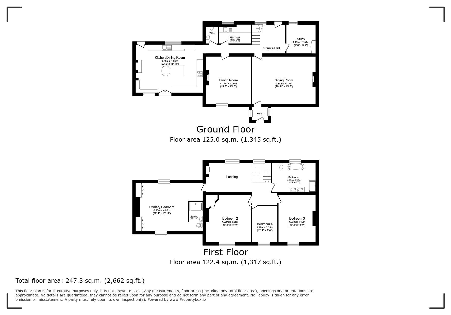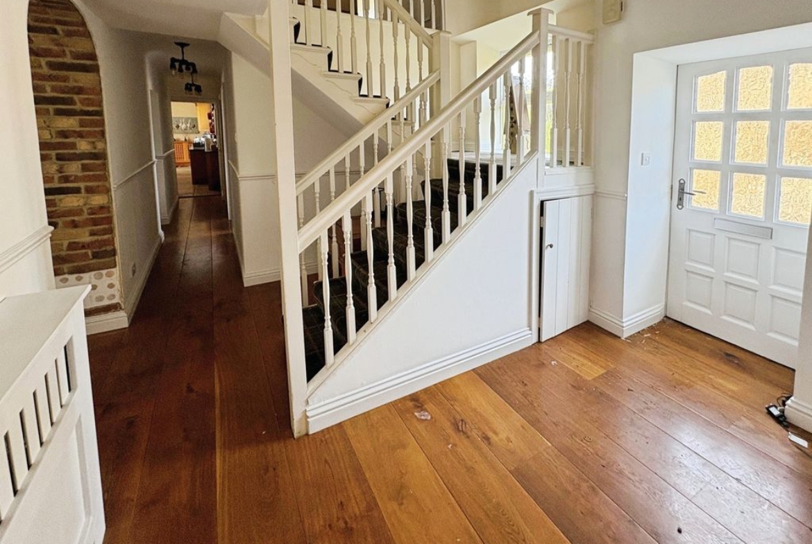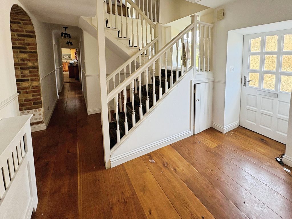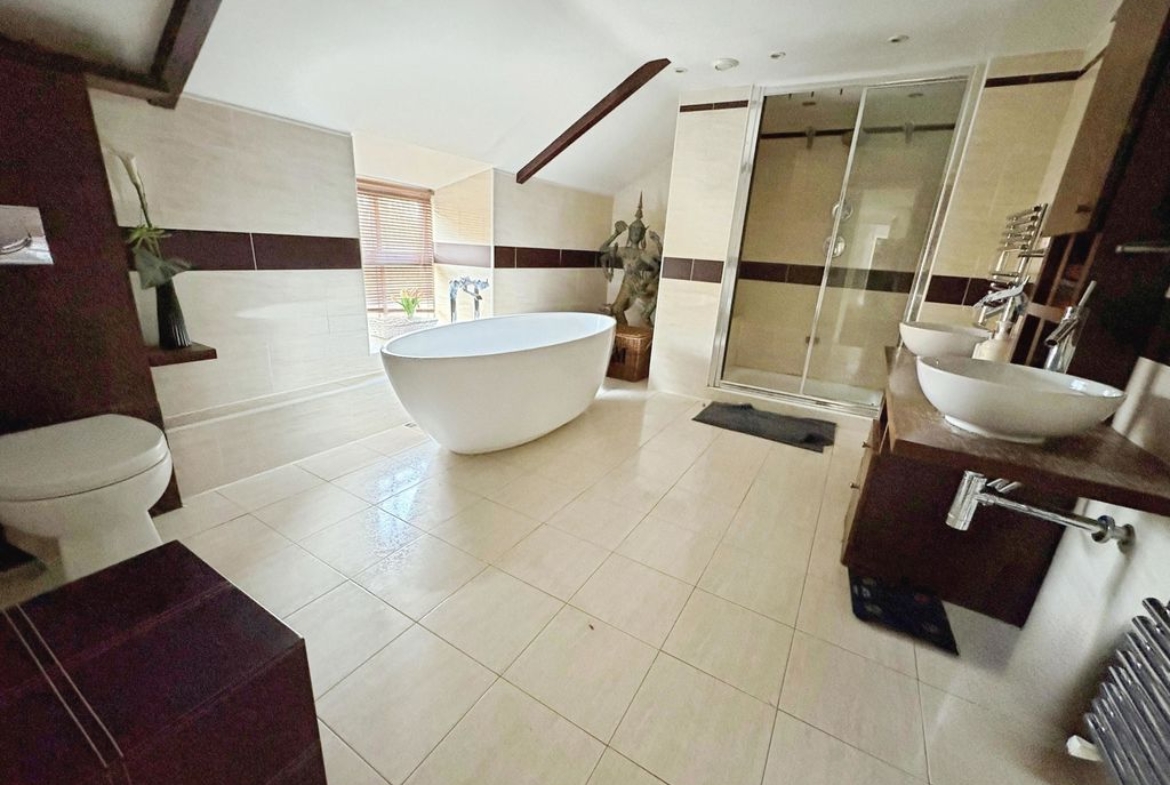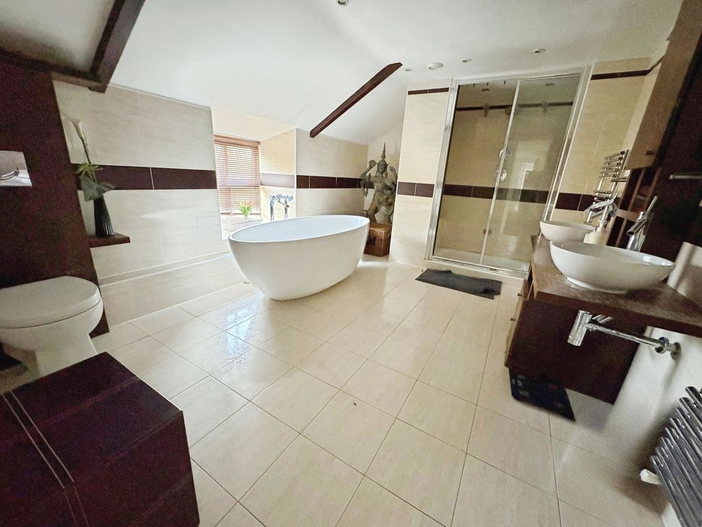 The first floor is equally impressive with a galleried landing and period fire place with log burner which gives access to the four double bedrooms. The principal bedroom is light and airy and boasts both fitted wardrobes and a stylish En suite. The family bathroom is beautifully presented with both luxury bath and separate shower catering to both preferences and twin basins.