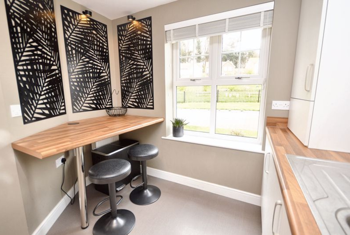 Double-glazed window | Breakfast bar with integrated charging point | Gas Boiler | Matching wall and base units | Integrated Oven, gas hob and dishwasher | Space for fridge freezer | Stainless steel sink | Radiator