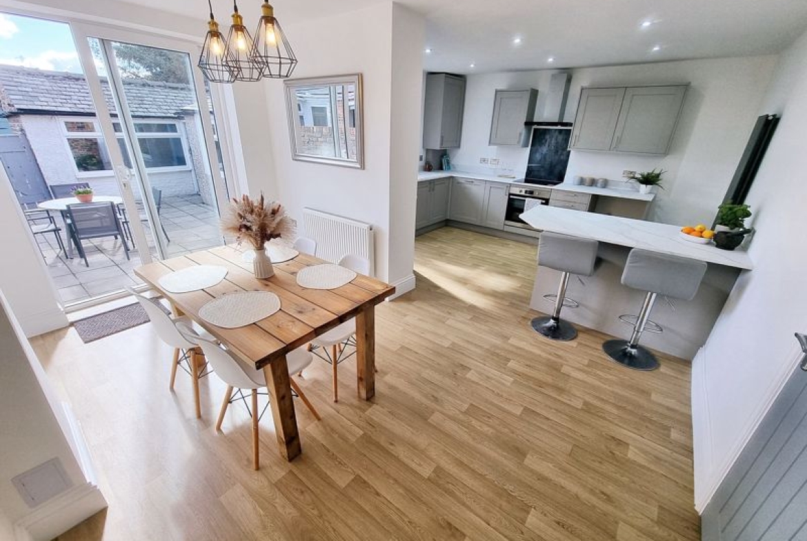 Upon entering, you are welcomed into a bright and spacious reception room, providing an inviting atmosphere for relaxation and entertaining guests. The heart of the home is a well-appointed open plan kitchen/dining room offering a range of integrated appliances.