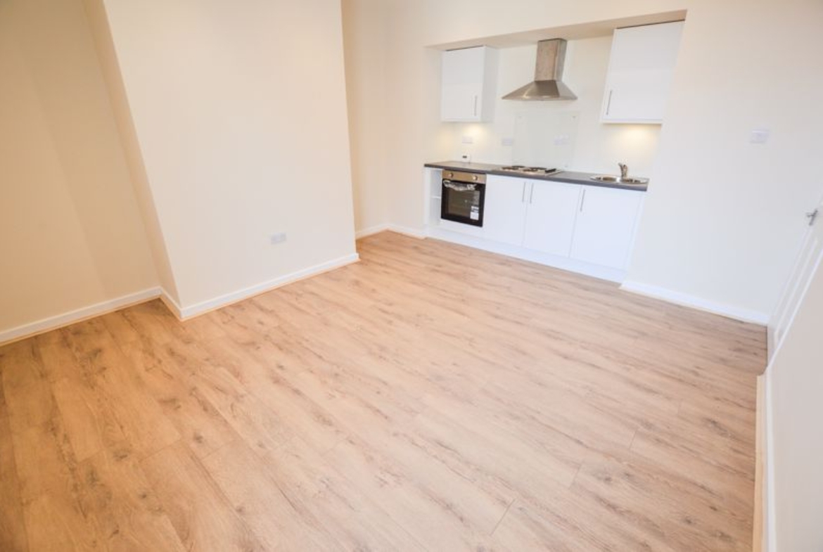 The property welcomes you with a spacious hallway complete with built-in storage, leading to two generously sized bedrooms filled with natural light. At the heart of the home is a contemporary open-plan kitchen and lounge area, designed for both everyday living and entertaining. A separate utility area provides additional practicality, while the bathroom has been finished to a high standard with modern fittings.