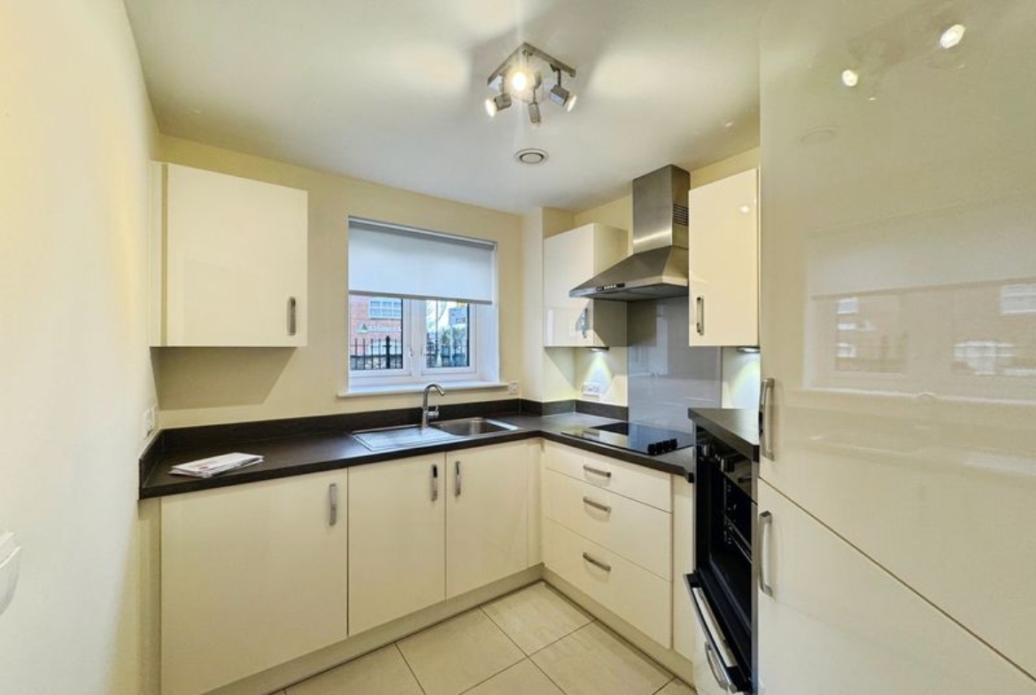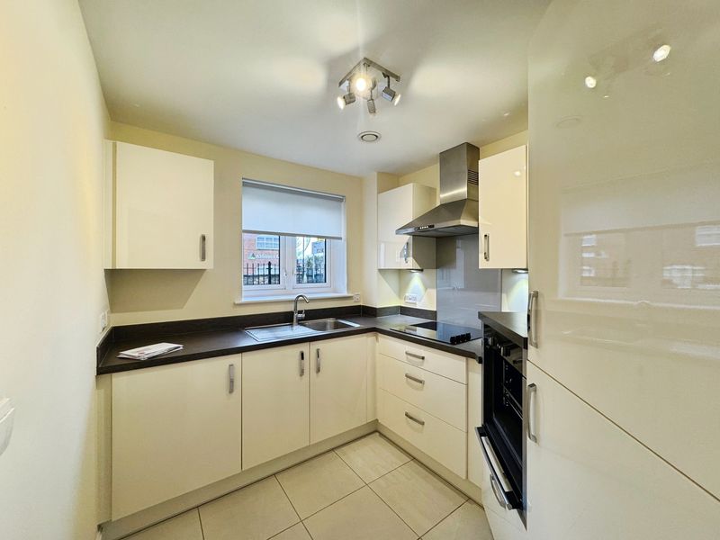 The property briefly comprises:- Entrance hallway, spacious lounge with patio door which leads out to a small garden area, where you can enjoy the outdoors. The kitchen has been fitted with a range of high gloss wall and base units with integrated appliances to include fridge/freezer, electric oven and hob. You further benefit from a separate walk-in cupboard in the hallway which can easily accommodate your washing machine.