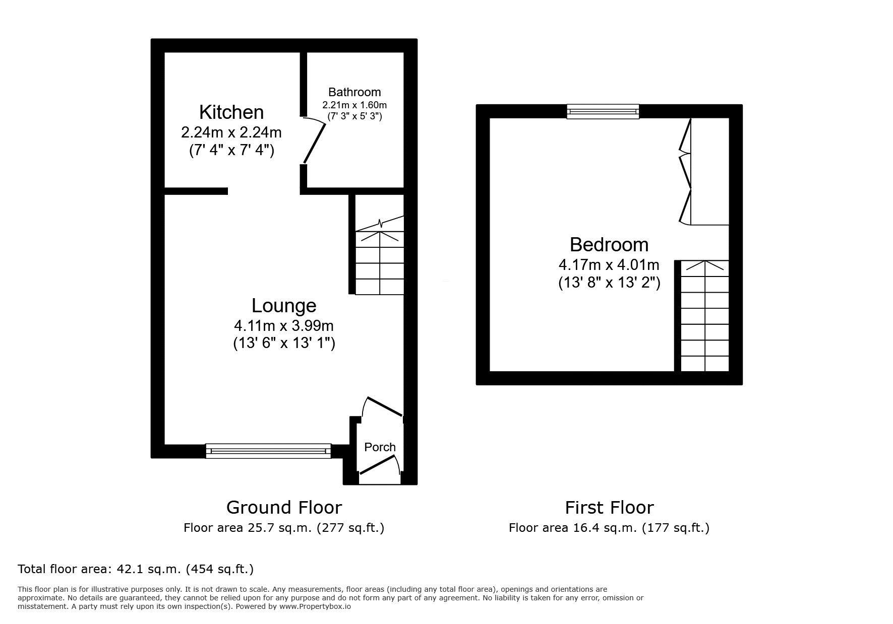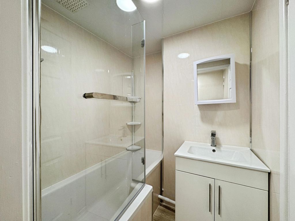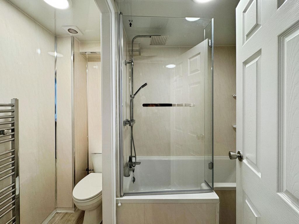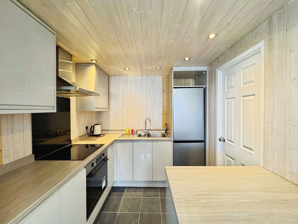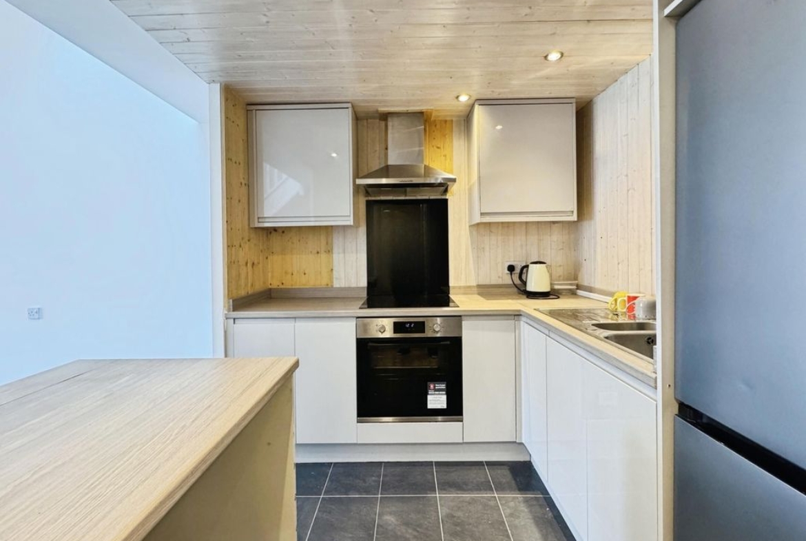 The property briefly comprises:- Entrance porch, leading straight into a light and airy open plan lounge/kitchen which offers large ceiling height a plenty of space for your own sofa and coffee table. The lounge has been fitted with light grey carpet and finished with white crisp walls. The kitchen has been fitted with a range of gloss wall and base units, offering plenty of storage. Appliances include induction hob and electric oven. The bathroom is located downstairs fitted with W.C., hand basin, bath and shower over bath.