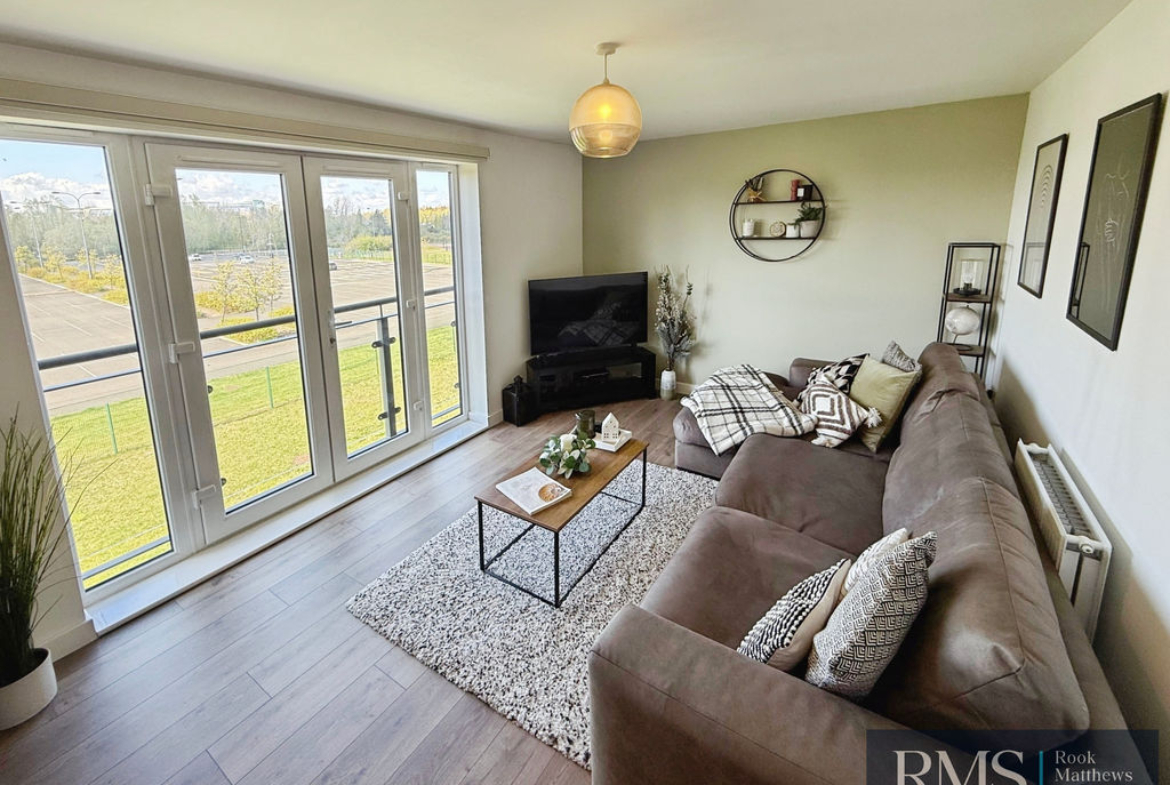 Viewing comes recommended on this stylish 2 bedroom top floor apartment located on the Newcastle Great Park. The property occupies a prime position with elevated views. It is presented to the highest of standards and features an open plan sitting room/kitchen with integrated appliances and Juliet balcony, dressing room /office, UPVC double glazing, gas fired central heating and allocated parking space. There are frequent transport links nearby as well as local shops and amenities. The A1 motorway is a short distance away.