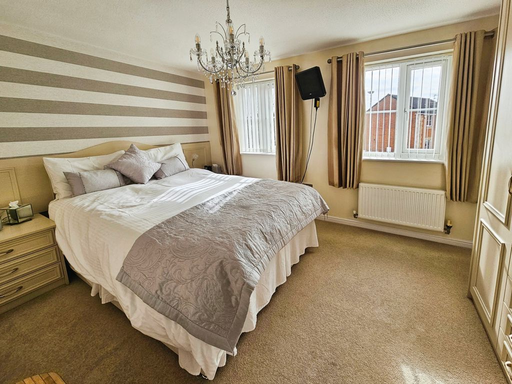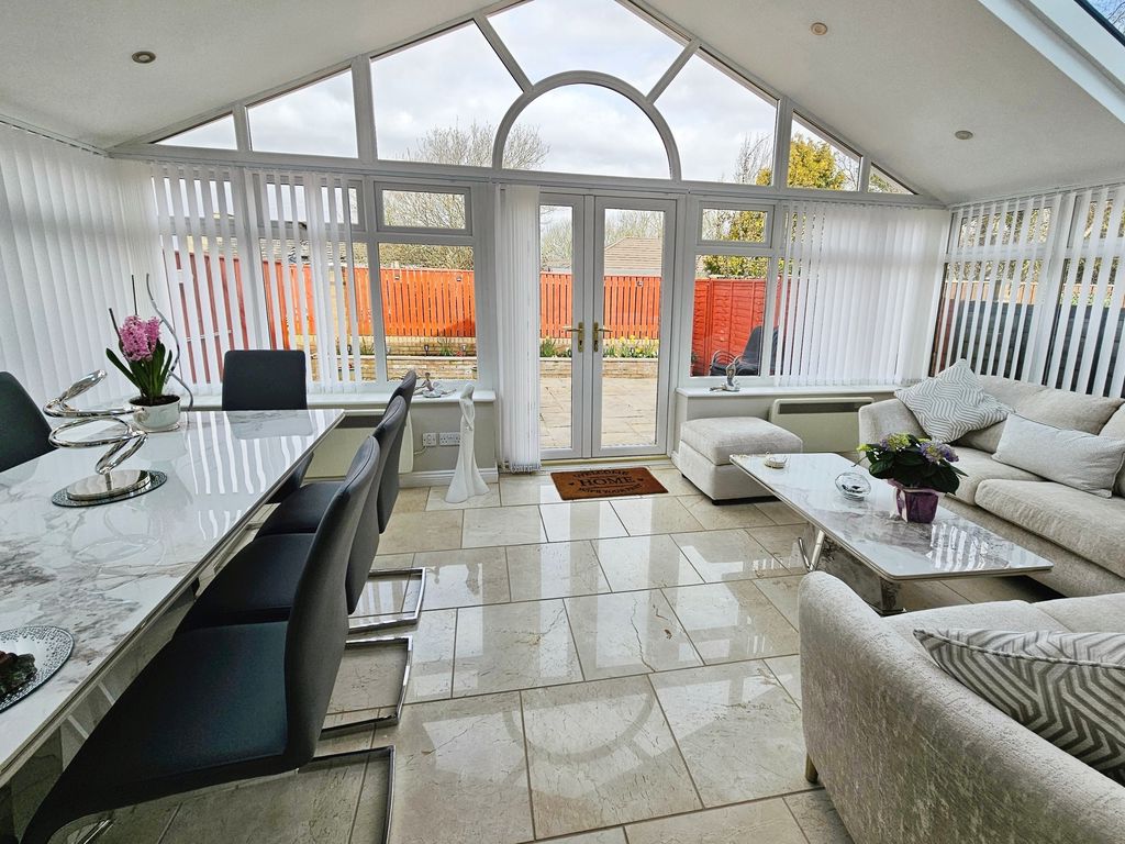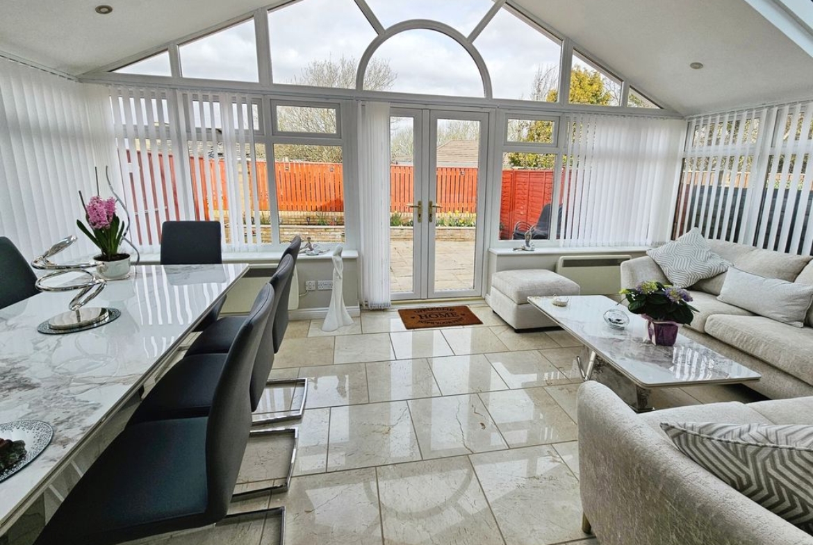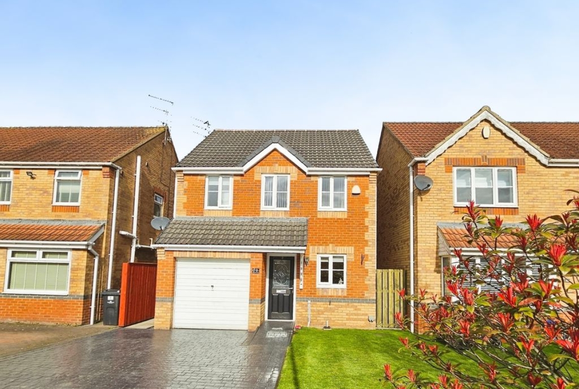 Beautifully presented three bedroom detached home located in the popular small residential cul de sac on the outskirts of Bedlington. Updated and maintained to a high standard this is a must view to appreciate what is on offer. Upon entering the front door your kitchen is located to the front of the property before entering the lounge/diner the convenient downstairs cloaks is located in the hallway. The lounge has patio doors leading to a spacious sunroom which is a great added feature. The first floor has three double bedrooms the master having an en-suite also located on the first floor is a family bathroom and storage cupboard.