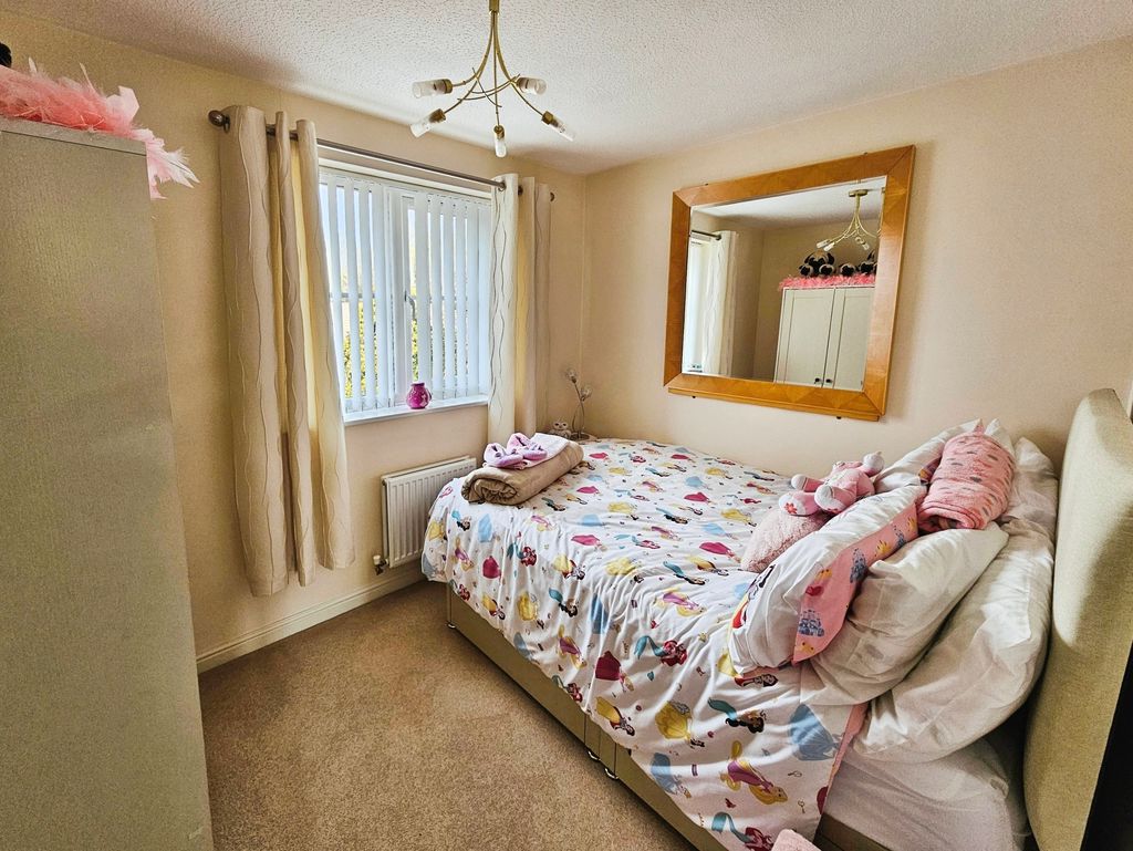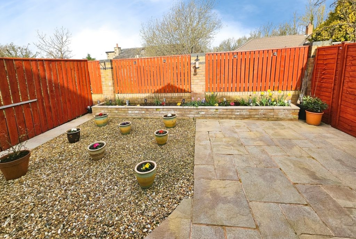 Front Garden laid mainly to lawn, flower borders, block paved driveway leading to garage. Low maintenance rear garden to rear, flower beds, screen fencing.