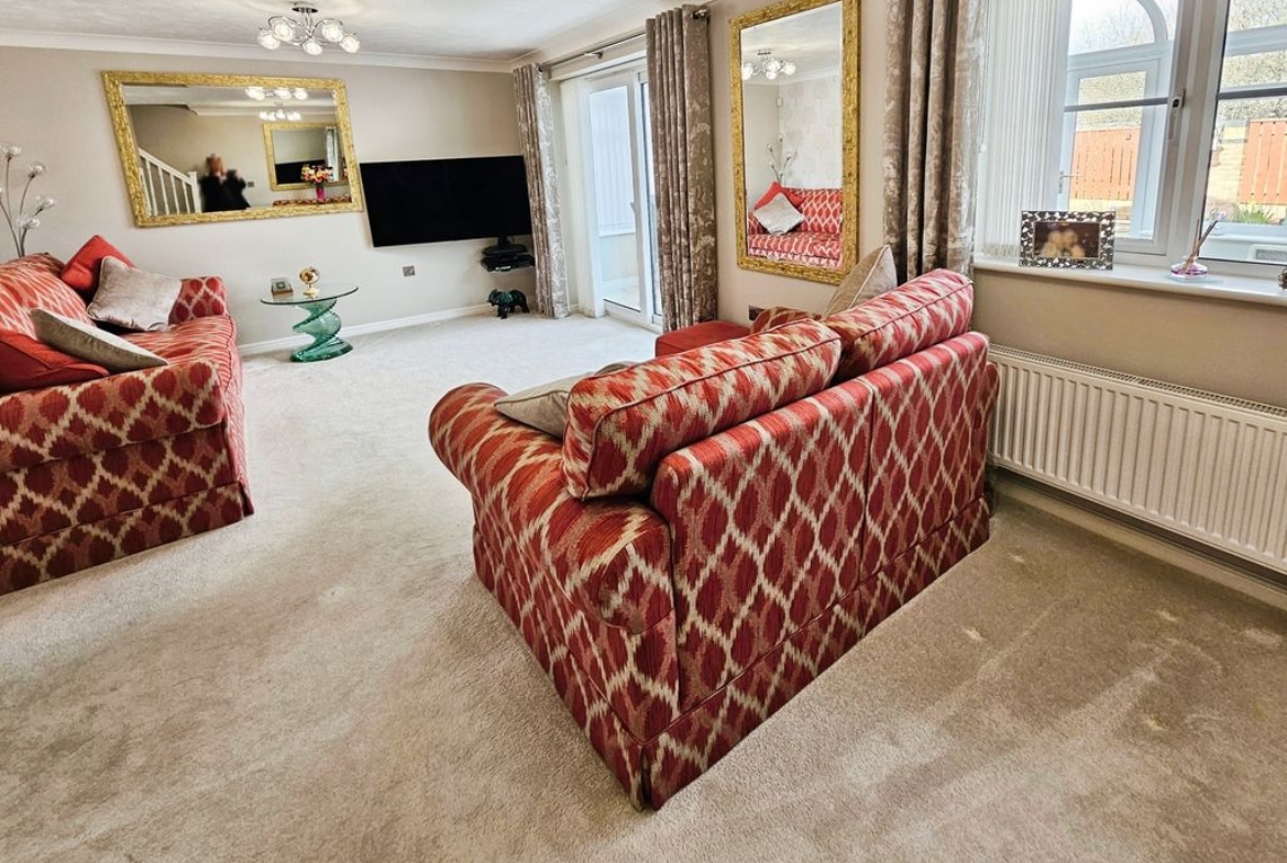 Double glazed window to rear, double glazed patio doors to rear, double radiator, television point, coving to ceiling, stairs to first floor.
